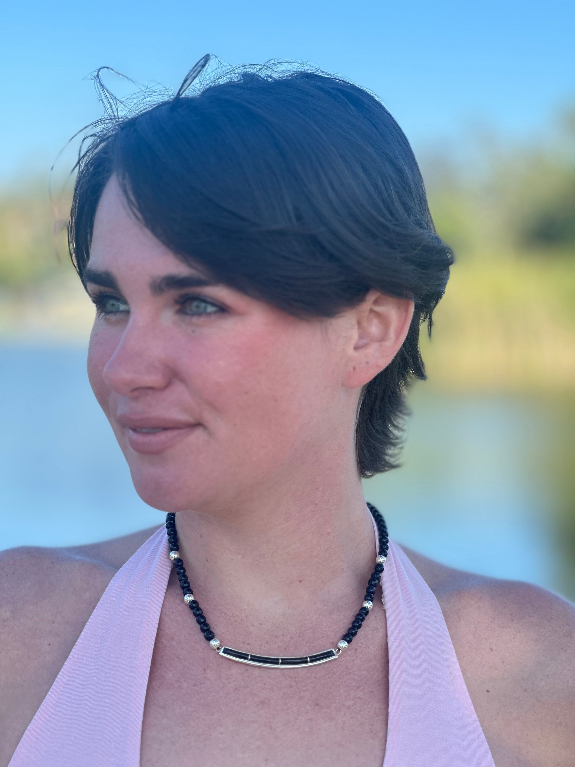 Handcrafted onyx sterling silver necklace, symbolizing protection and strength. Artisan design, perfect gift for anniversaries, birthdays & holidays.