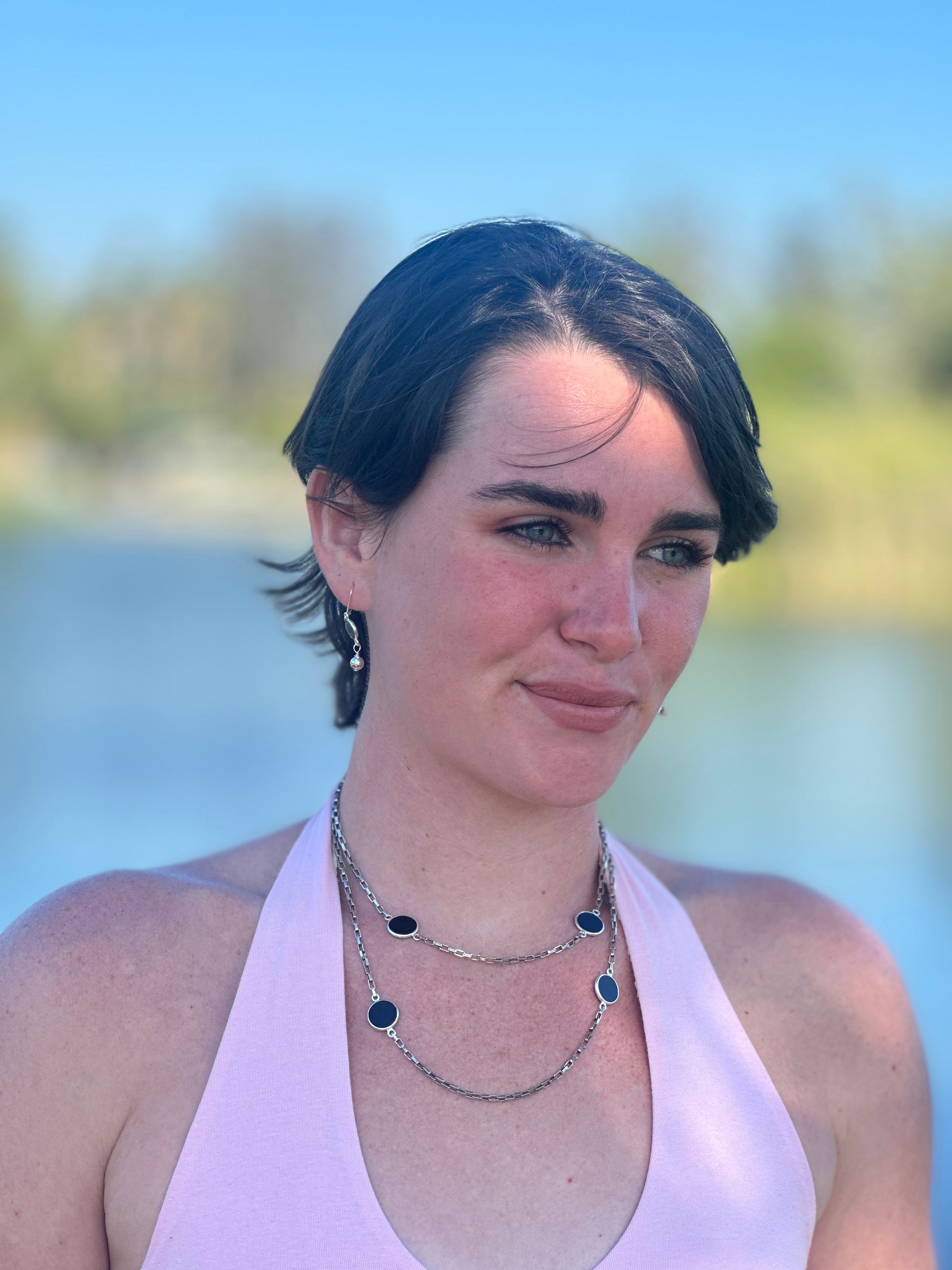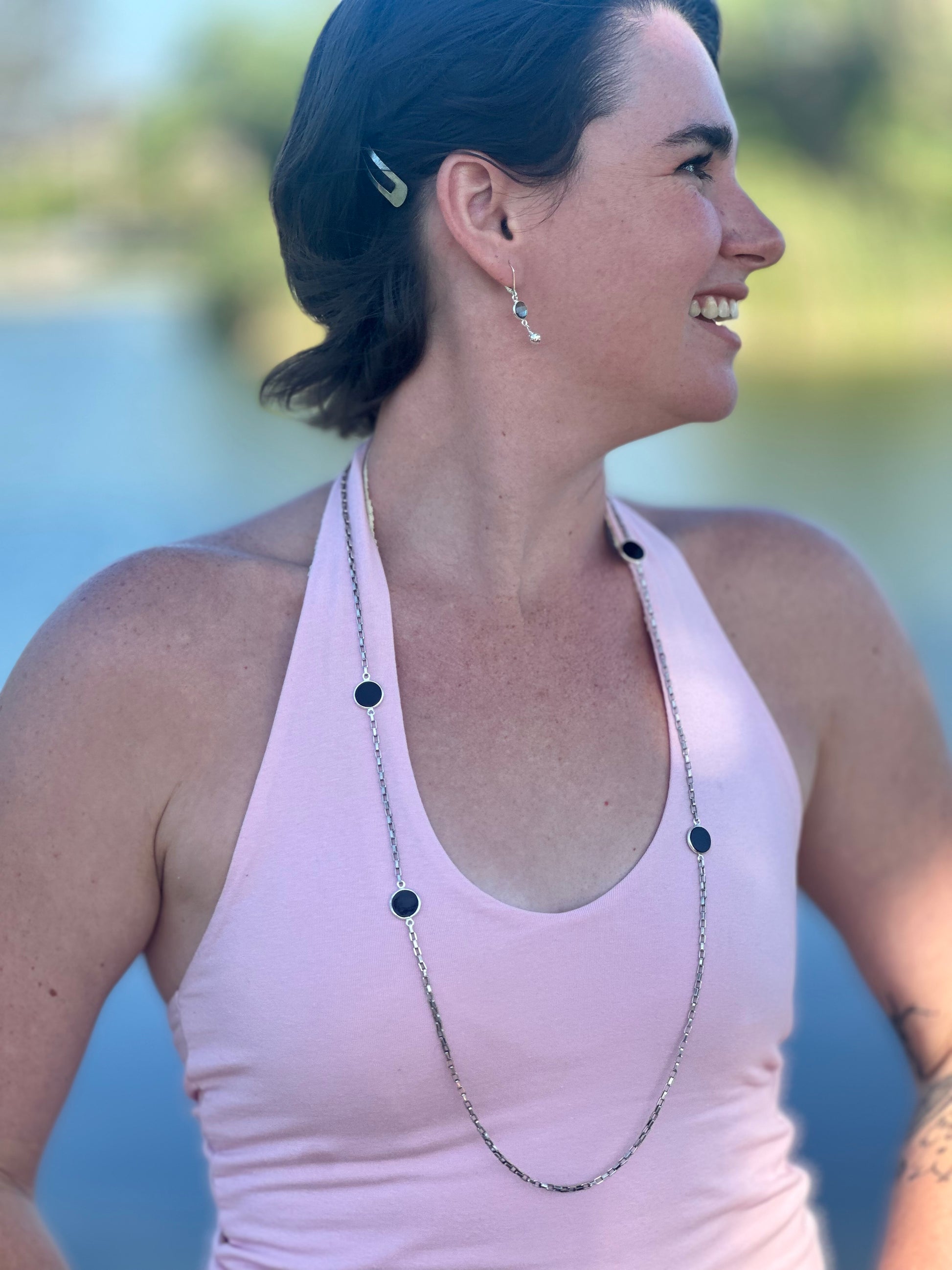 36” Onyx Oxidized Sterling Necklace