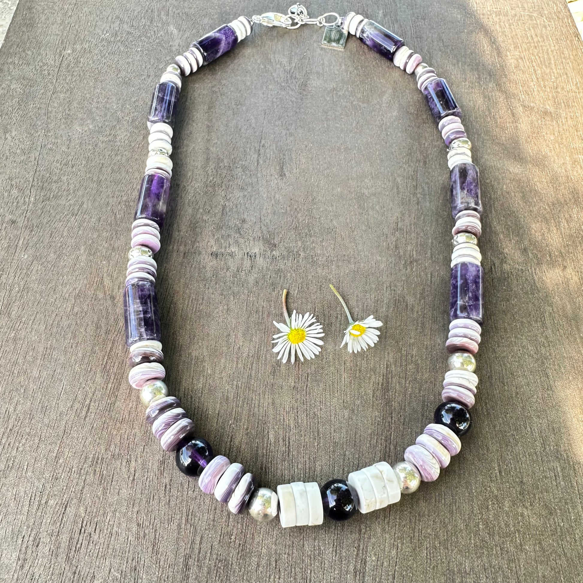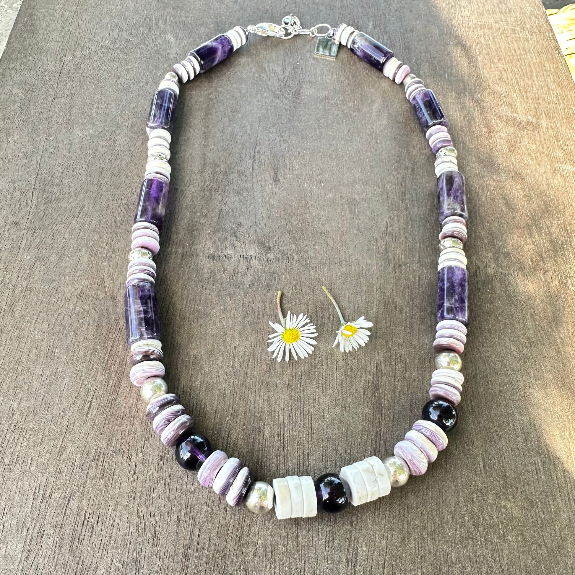 Amethyst, Purple Spiny Oyster, Navajo Pearl, Sterling Silver.