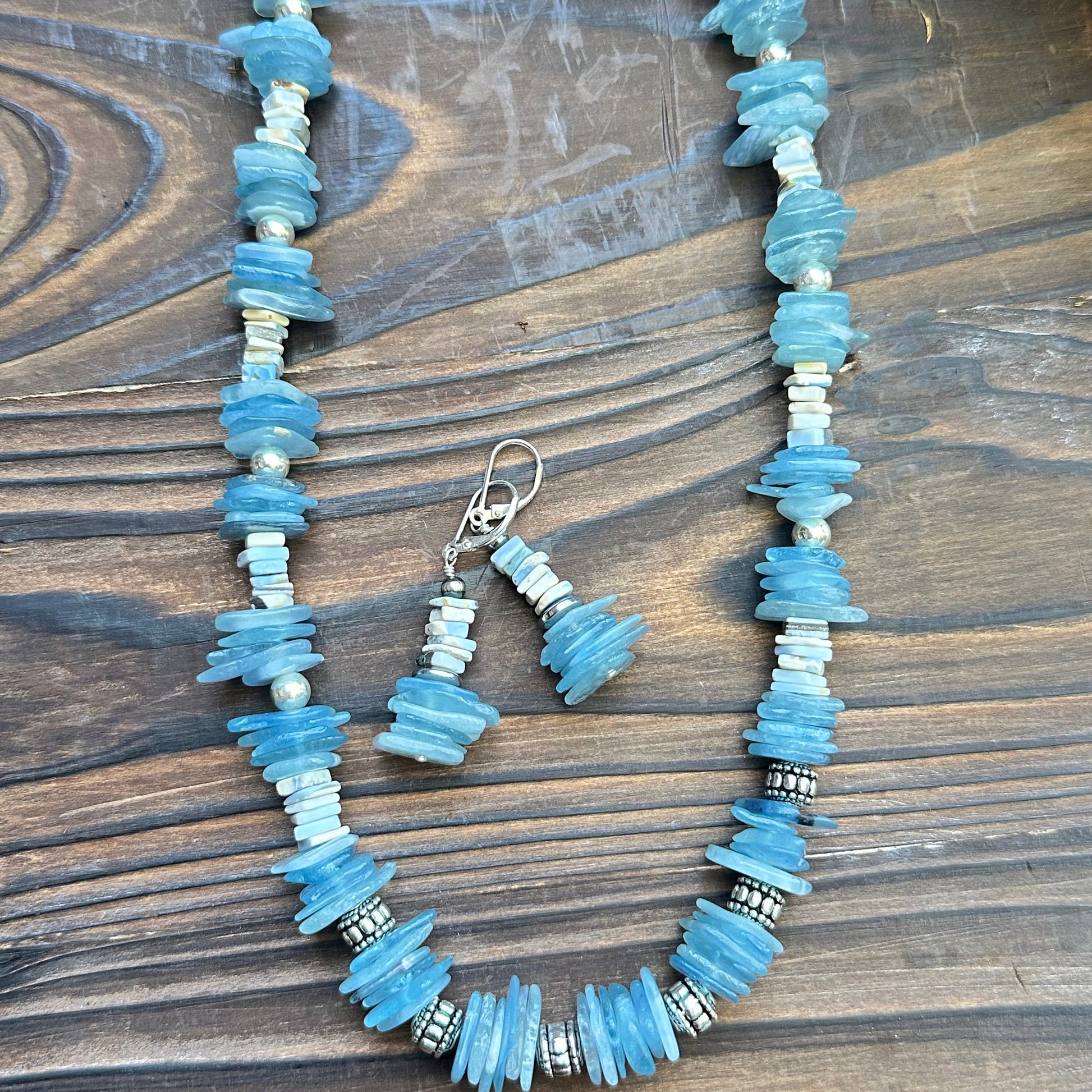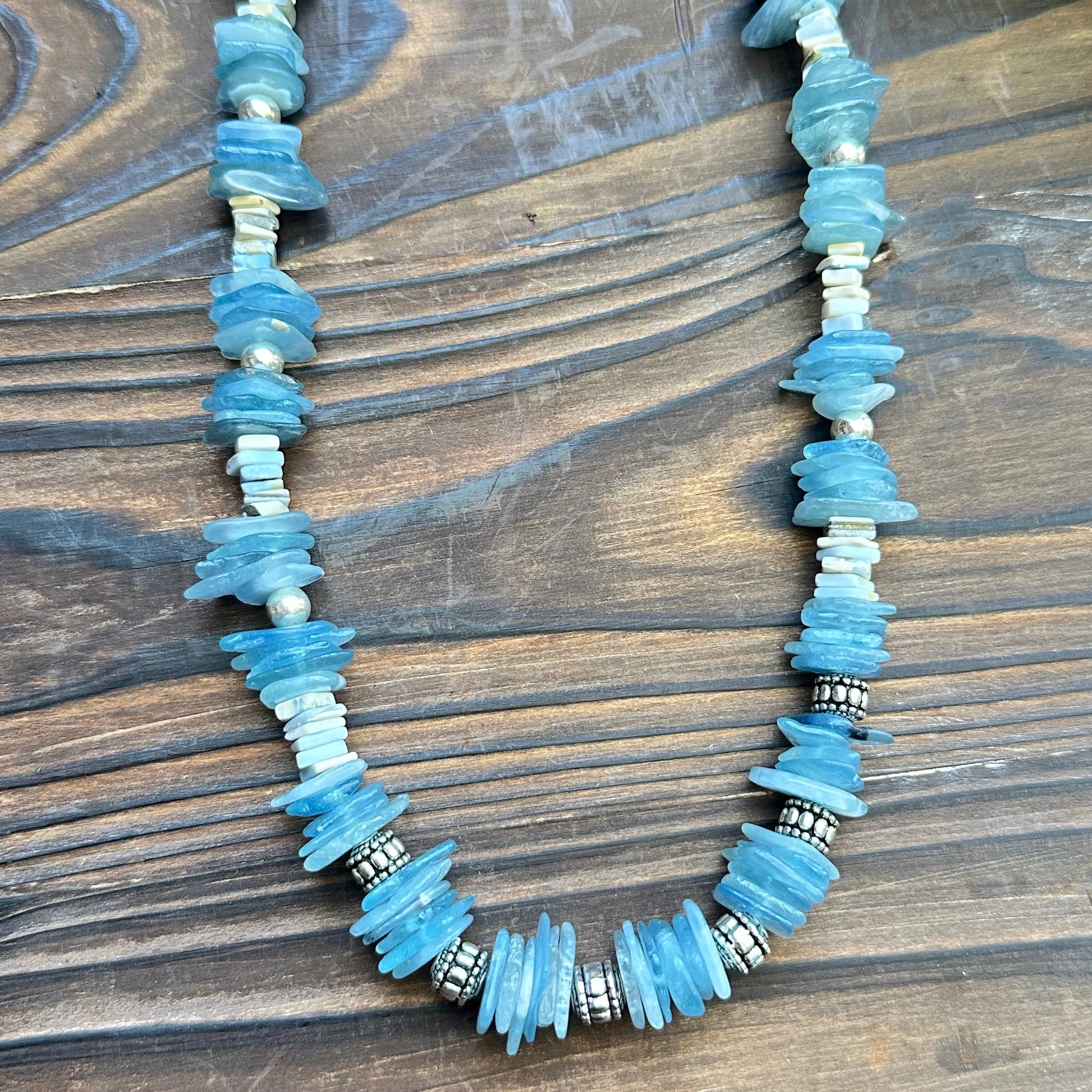 Handcrafted aquamarine & fluorite sterling silver necklace, symbolizing renewal and clarity. Artisan heirloom gift for weddings, anniversaries & birthdays.
