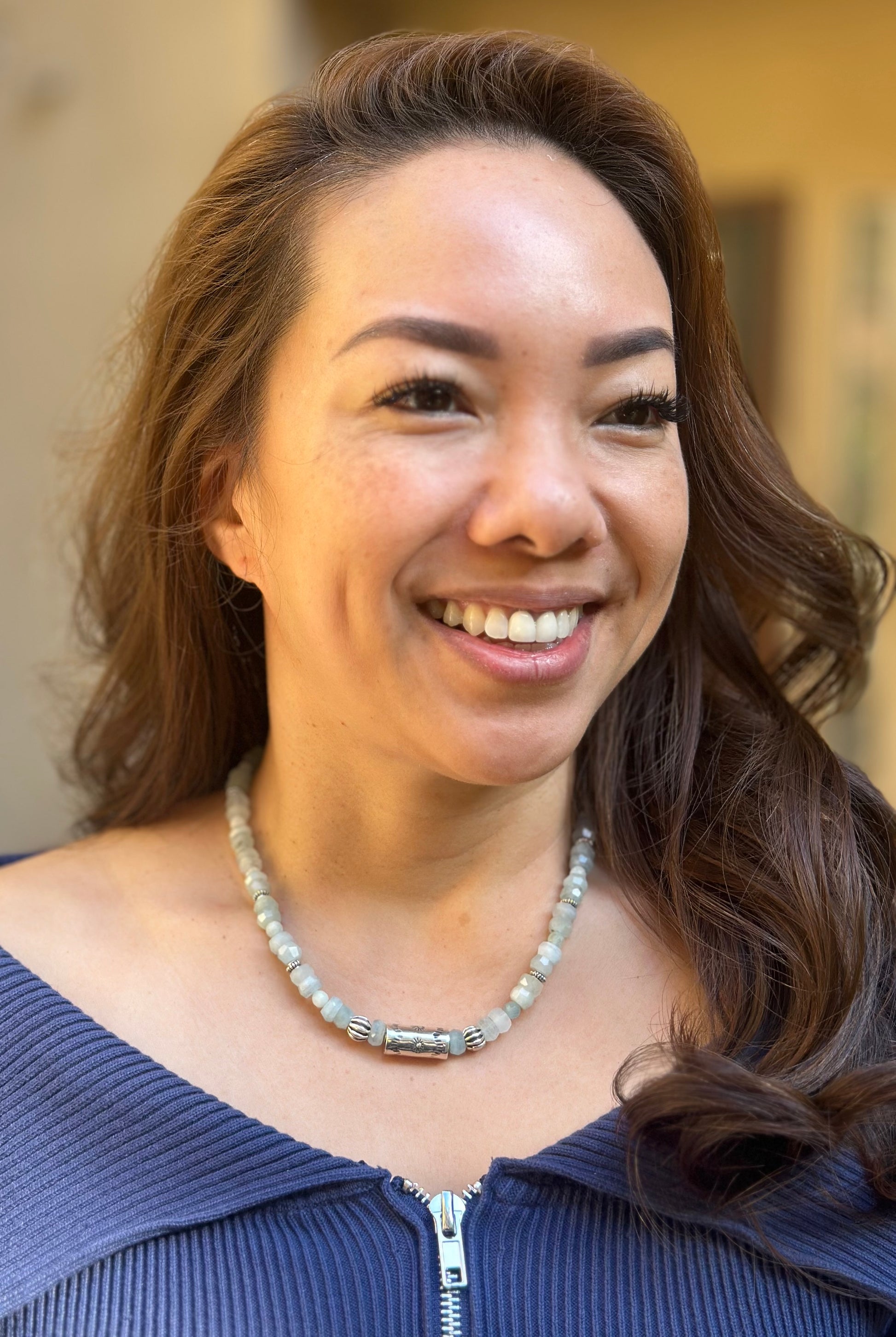 Authentic aquamarine barrel necklace in sterling silver, celebrated for serenity. Artisan handcrafted gift for weddings, graduations & anniversaries.