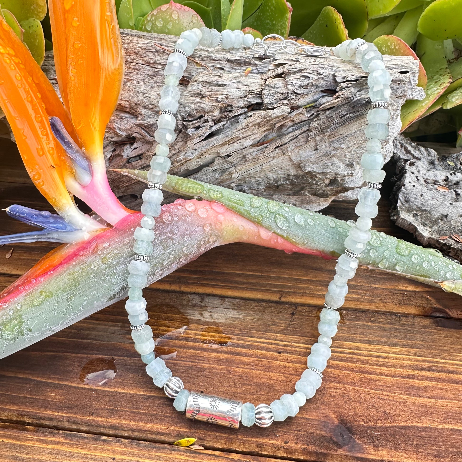 Aquamarine Sterling Barrel Necklace (18”-20”)