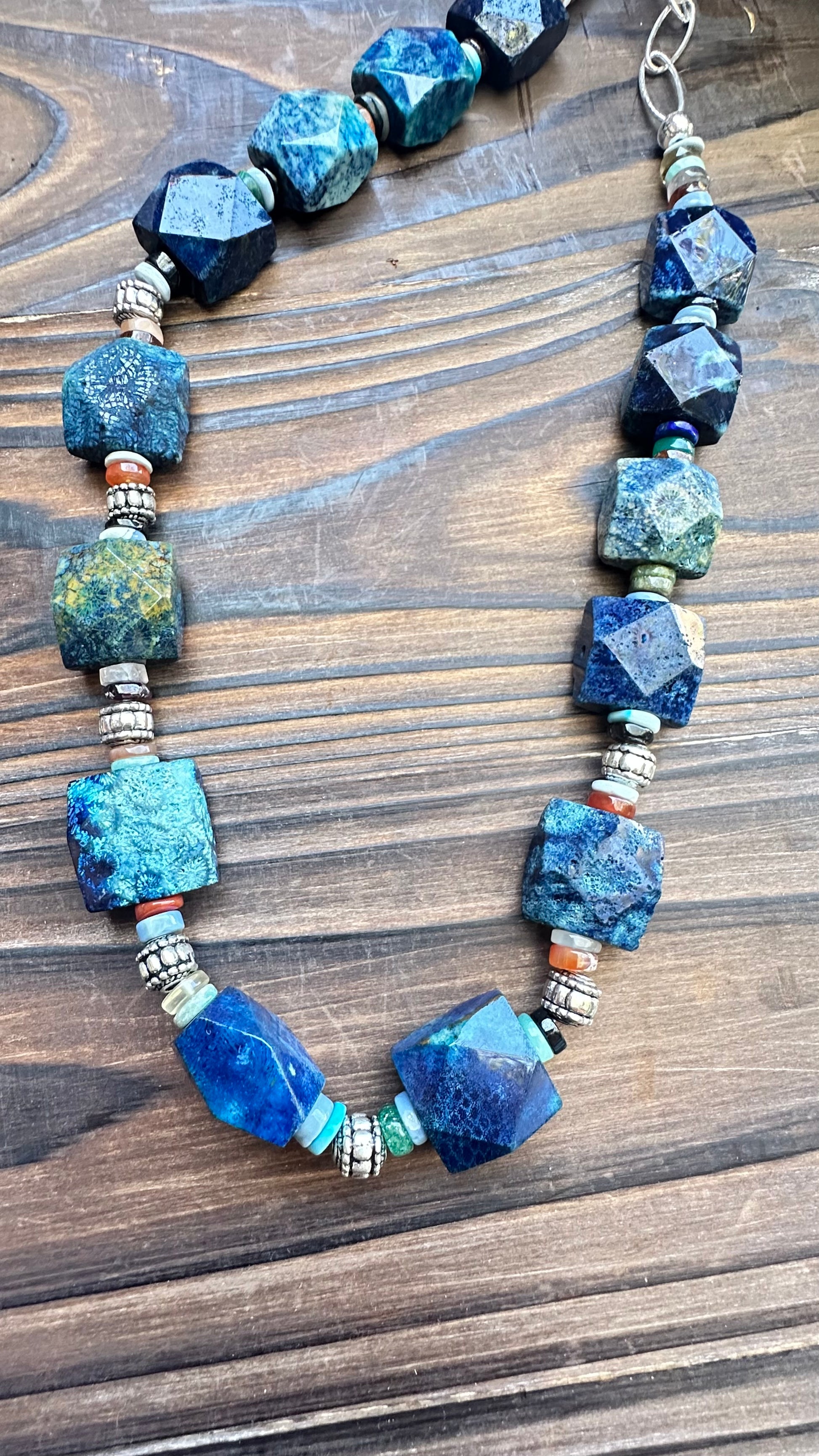 Azurite is highly regarded in metaphysical and spiritual practices for its deep blue color and connection to higher consciousness. It enhances intuition and promotes mental clarity and focus. Azurite is found in Arizona, Utah, and New Mexico, as well as Morocco and Mexico.
