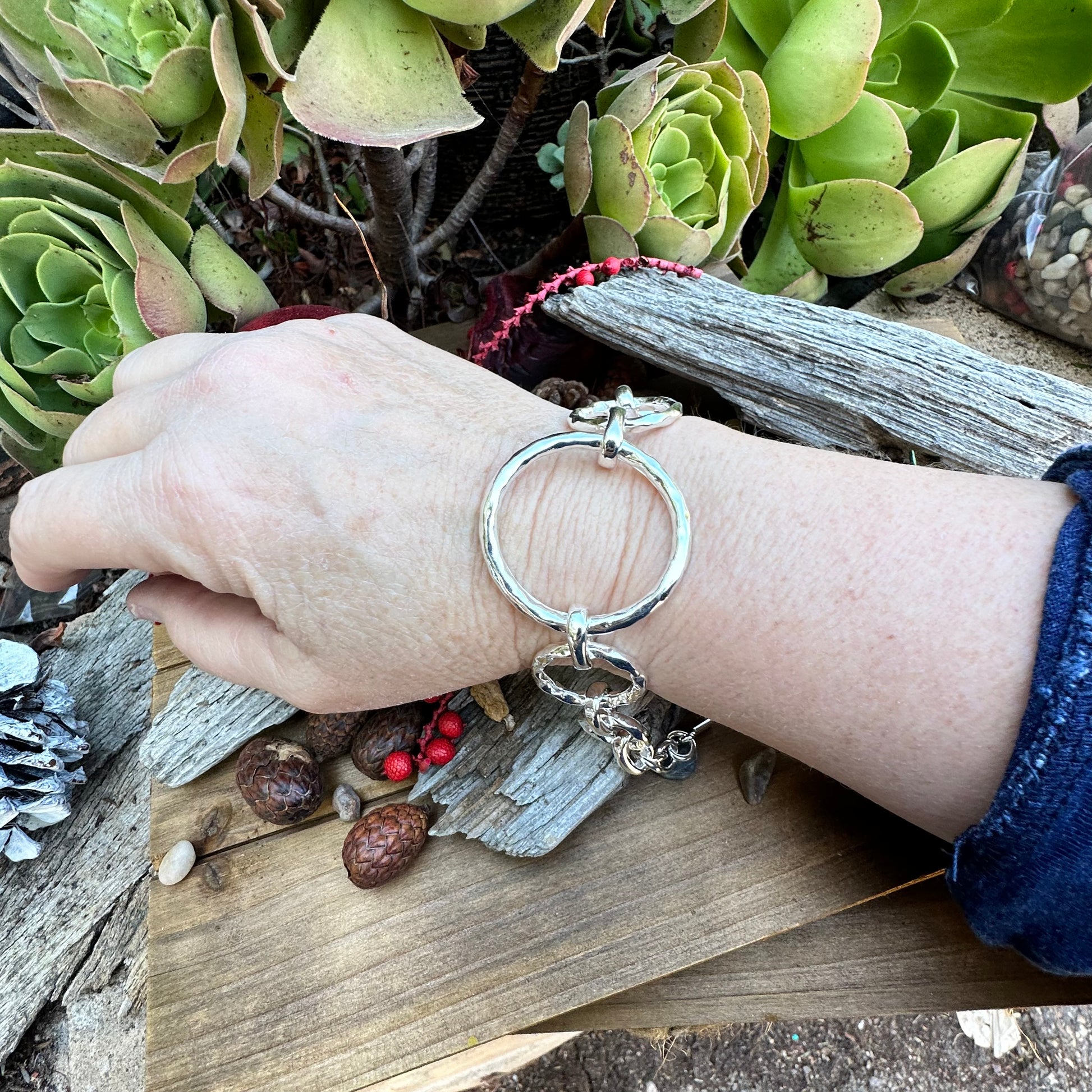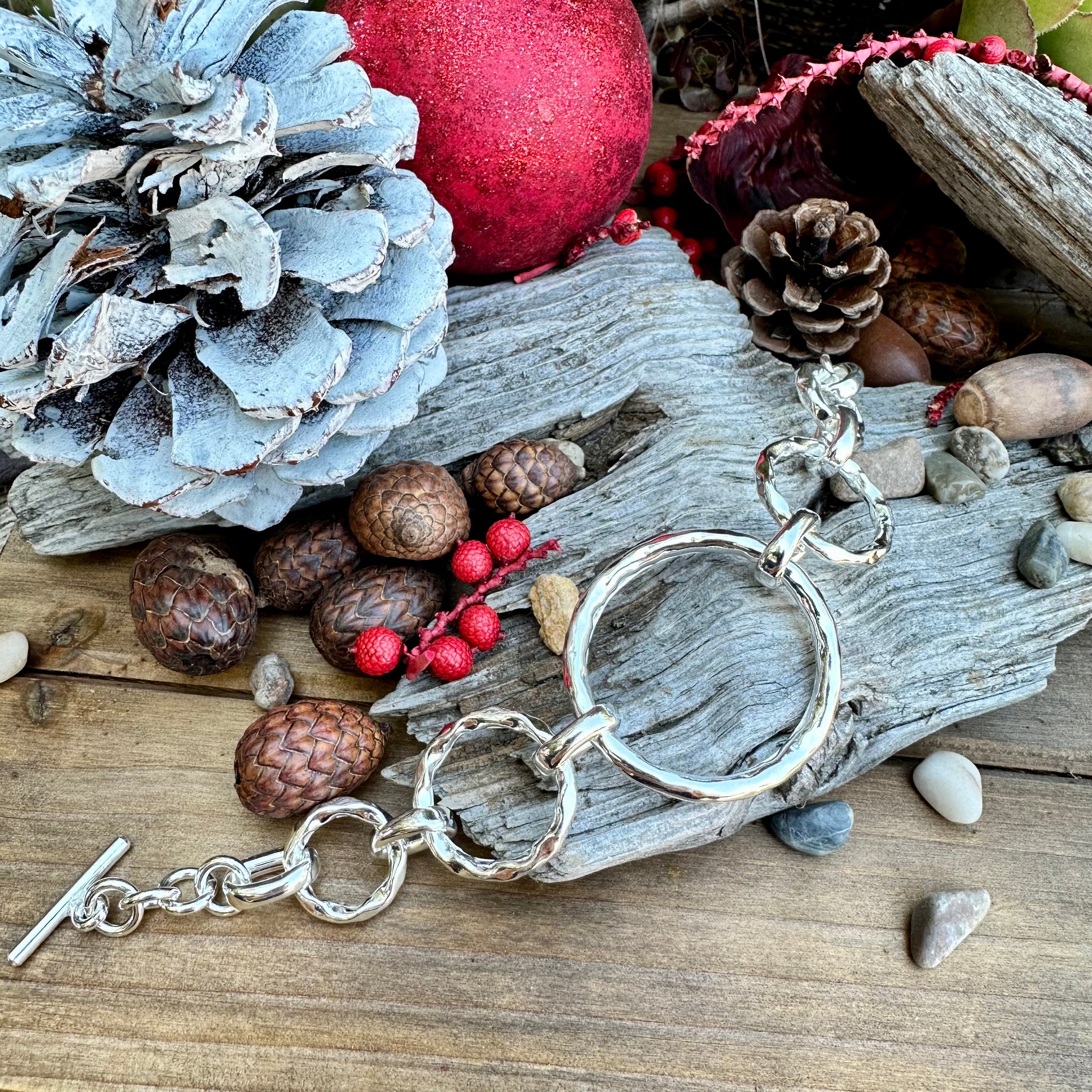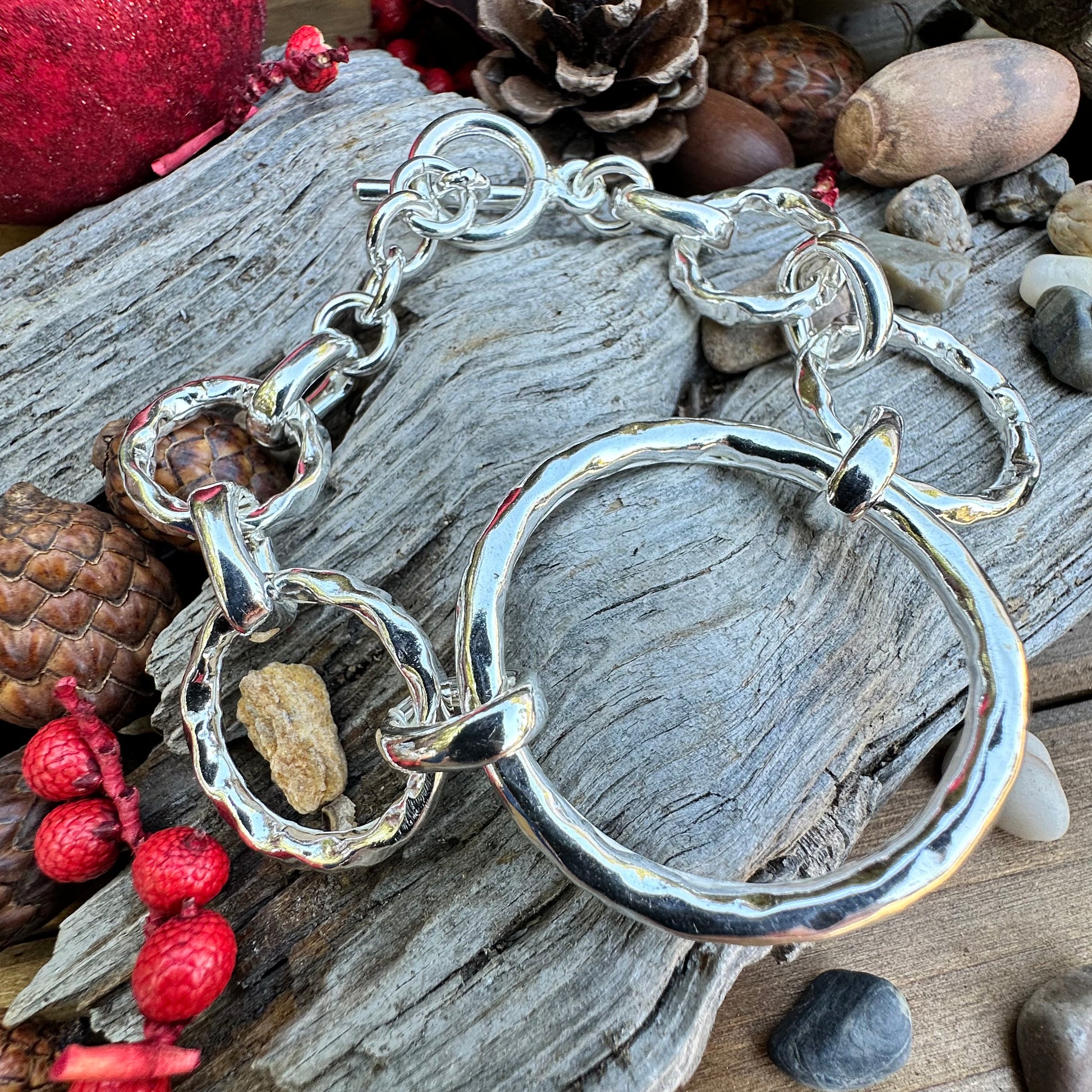 B0307 Circle Hammered Toggle Bracelet