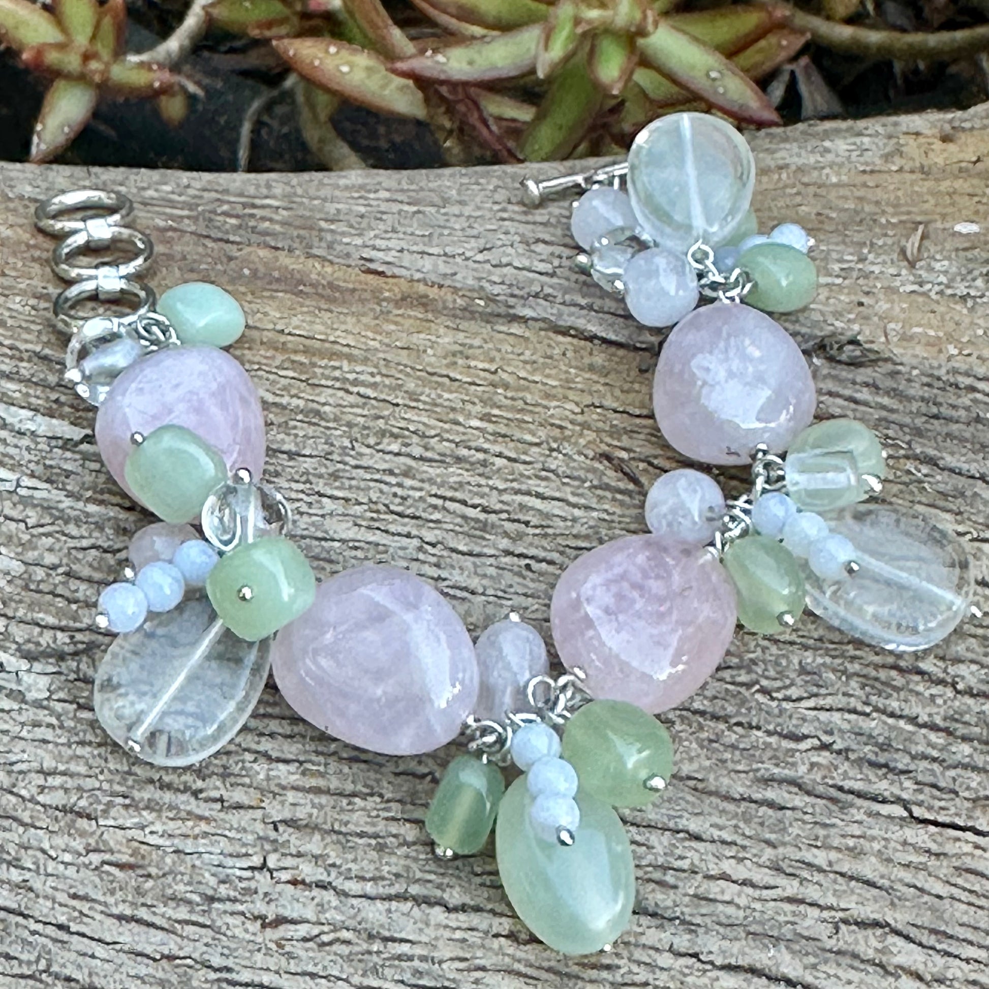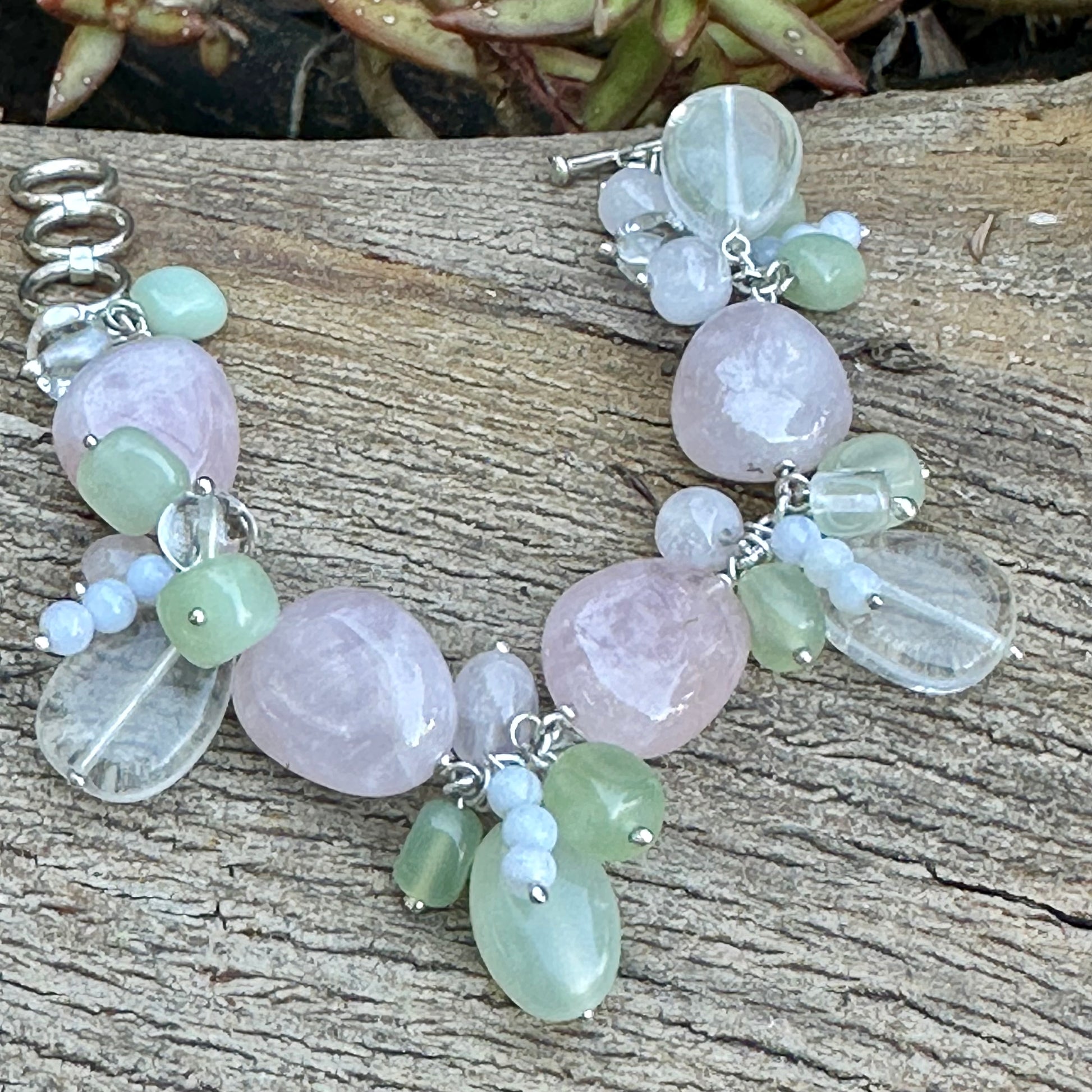 Smoky Quartz Clear Quartz Prehnite Moonstone Sterling Silver Bracelet