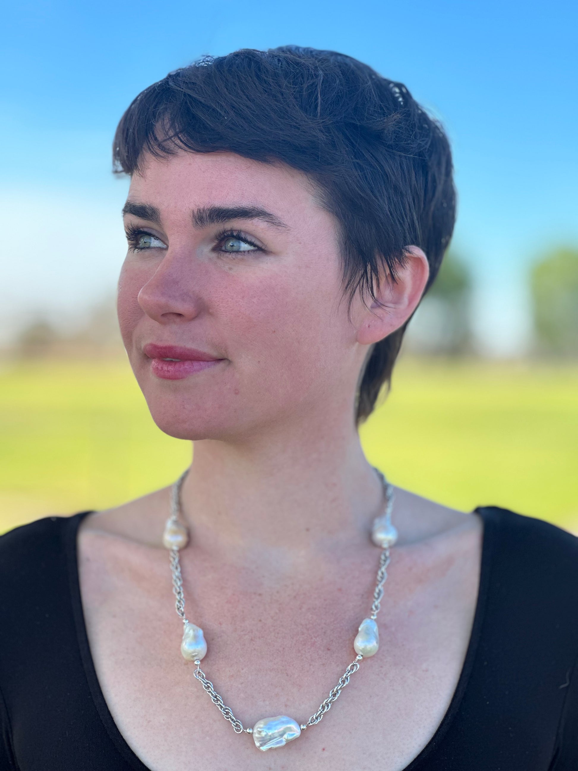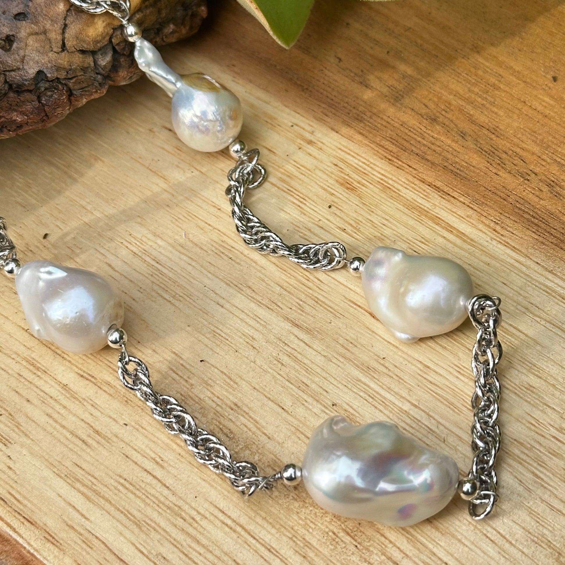 Baroque & Cultured Pearls and Sterling Silver Necklace