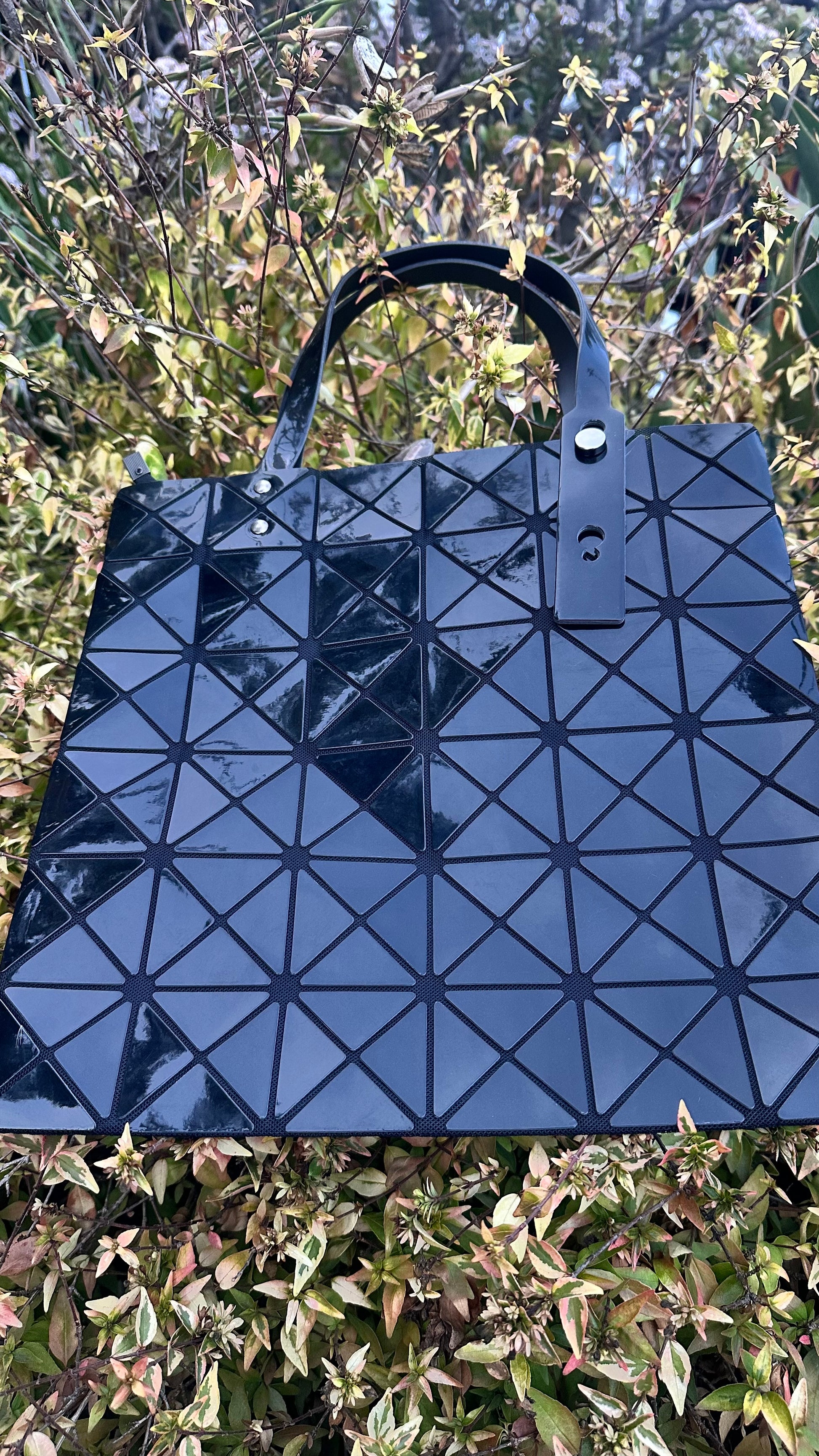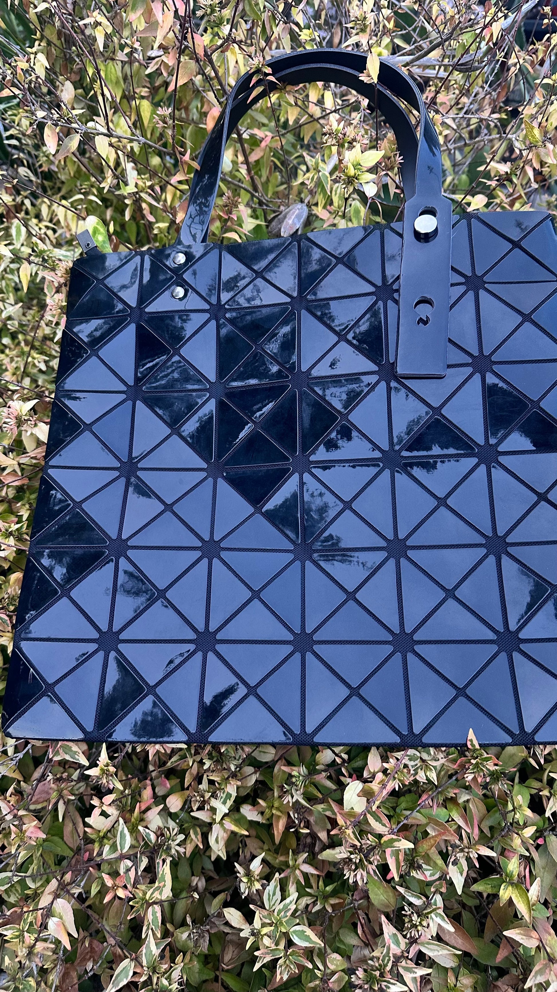 Fully lined - geometric design tote with zipper. Add-on shown in photographs. 13”x19”
