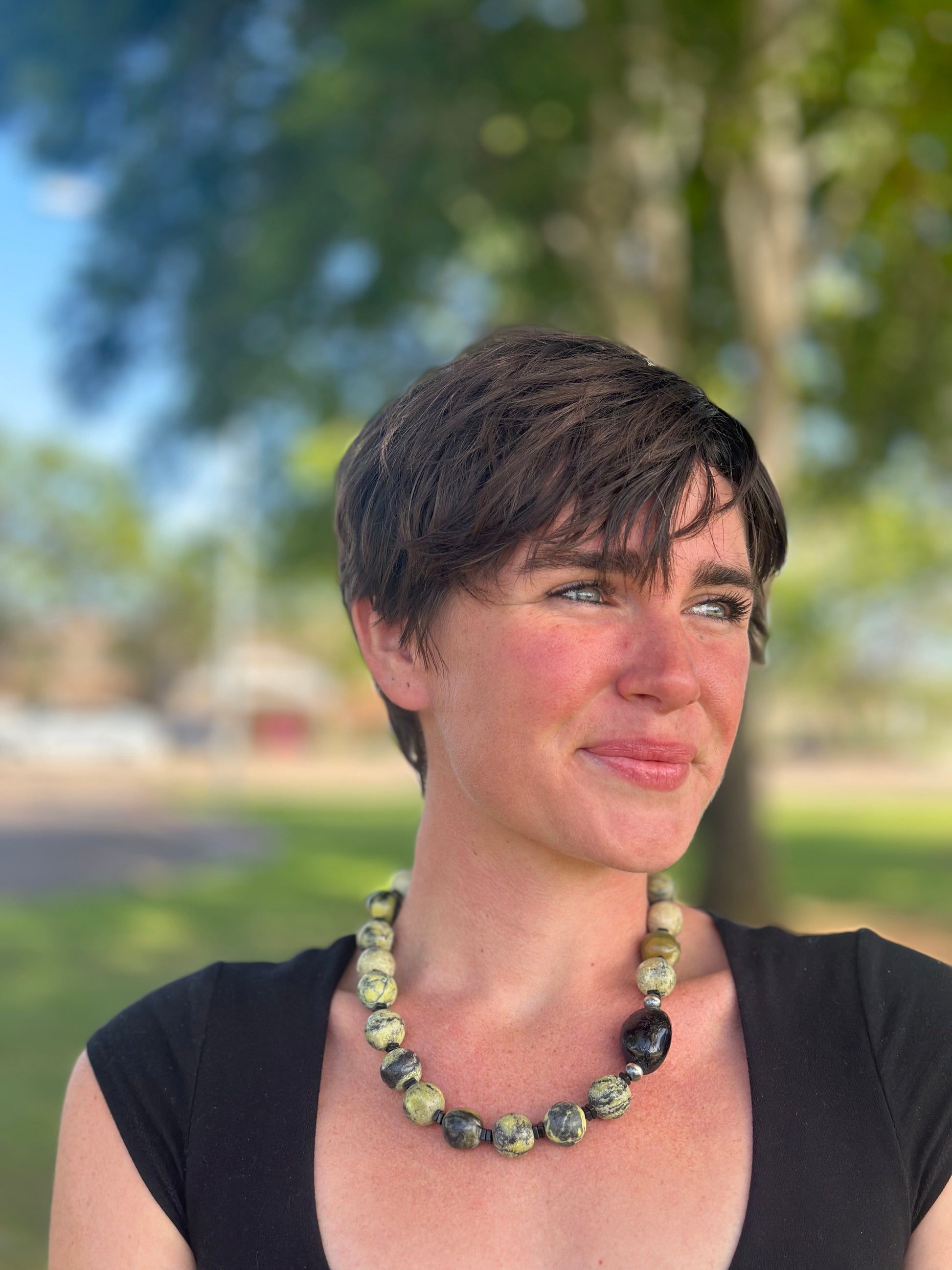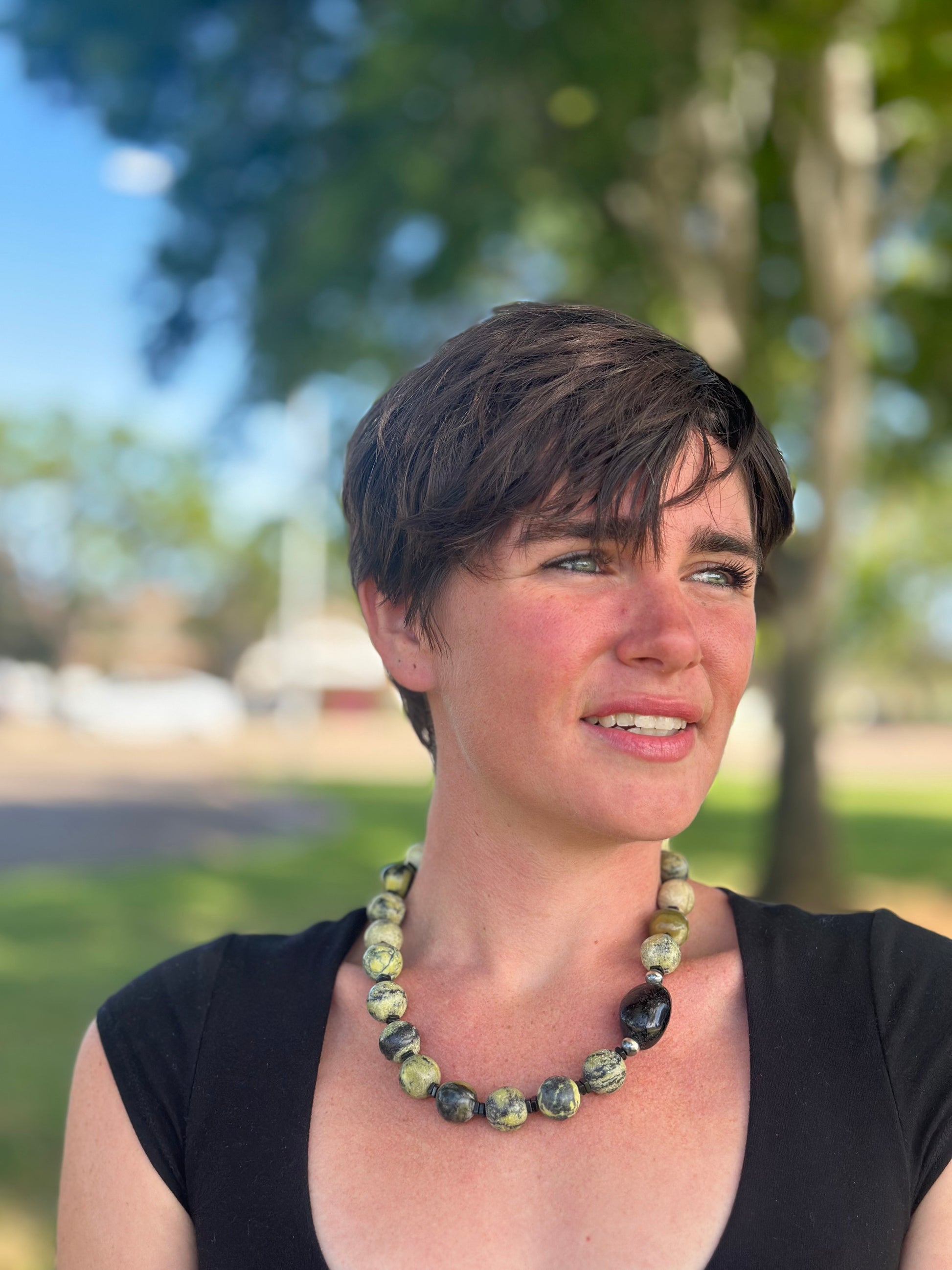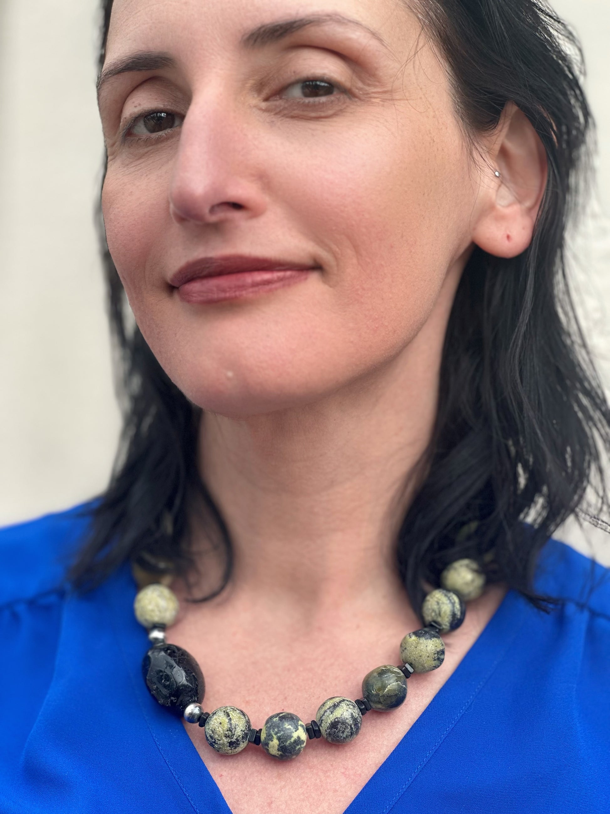 Artisan black tourmaline & serpentine necklace, known for grounding and protection. Handcrafted jewelry gift for graduations, birthdays & anniversaries.