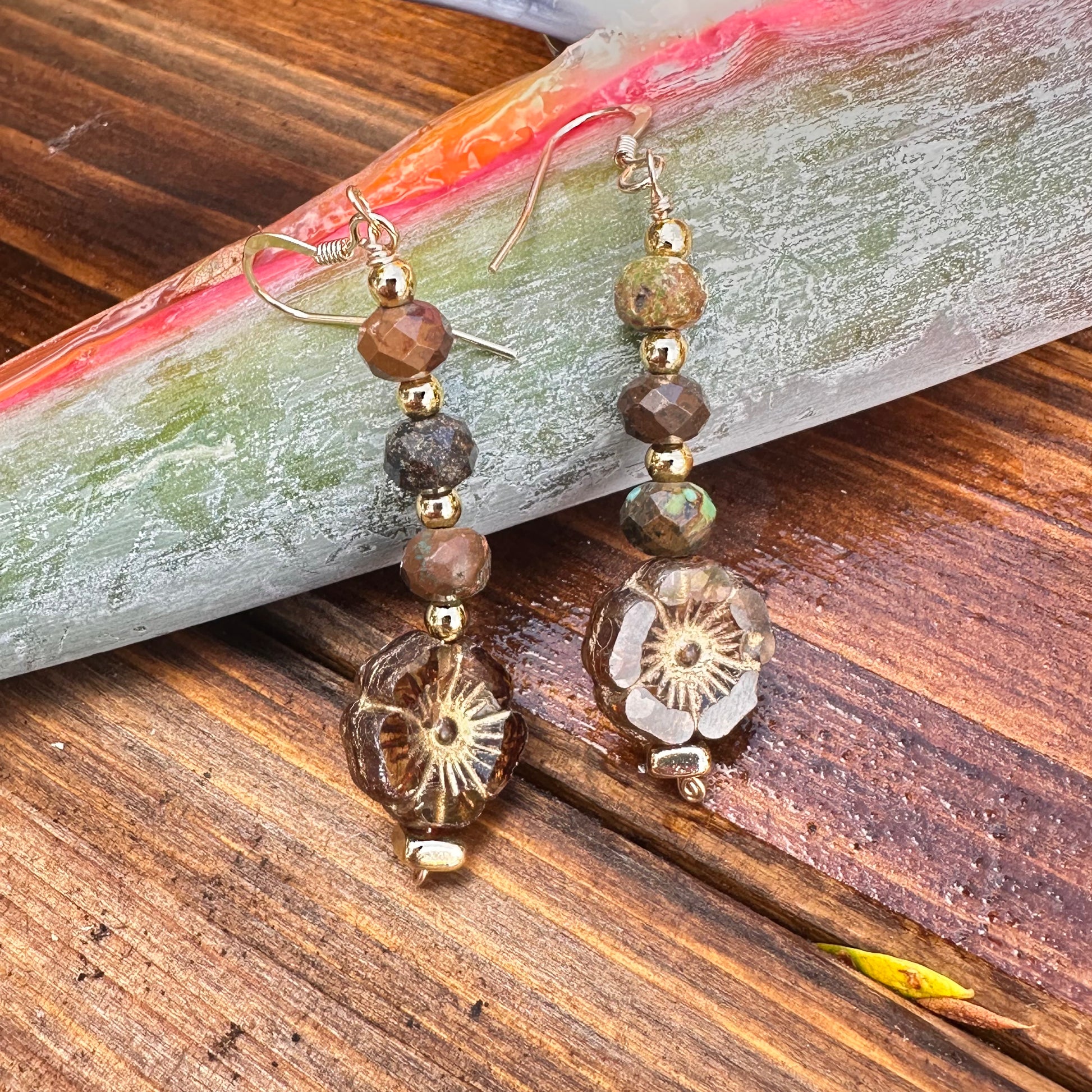 Gold Filled Jasper Picasso Glass Sterling Silver Earrings