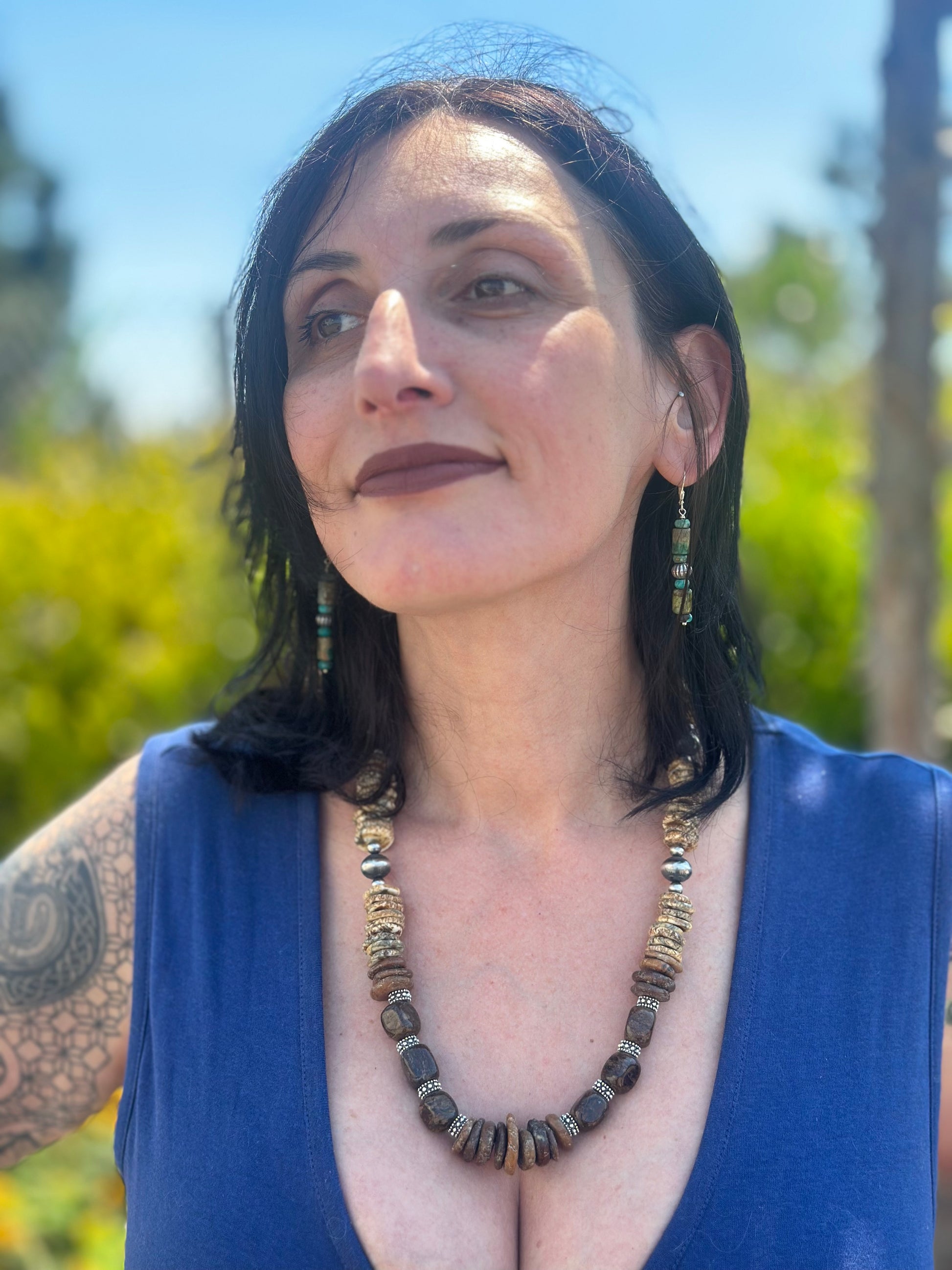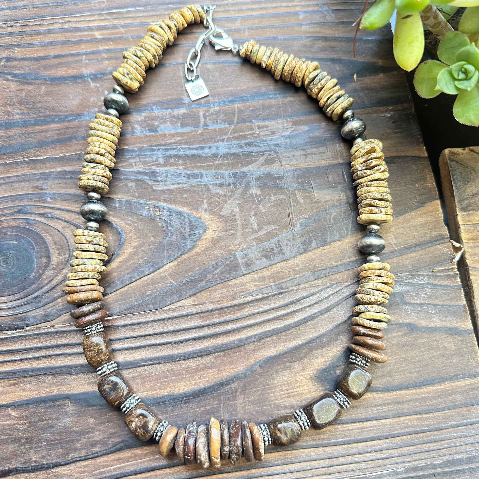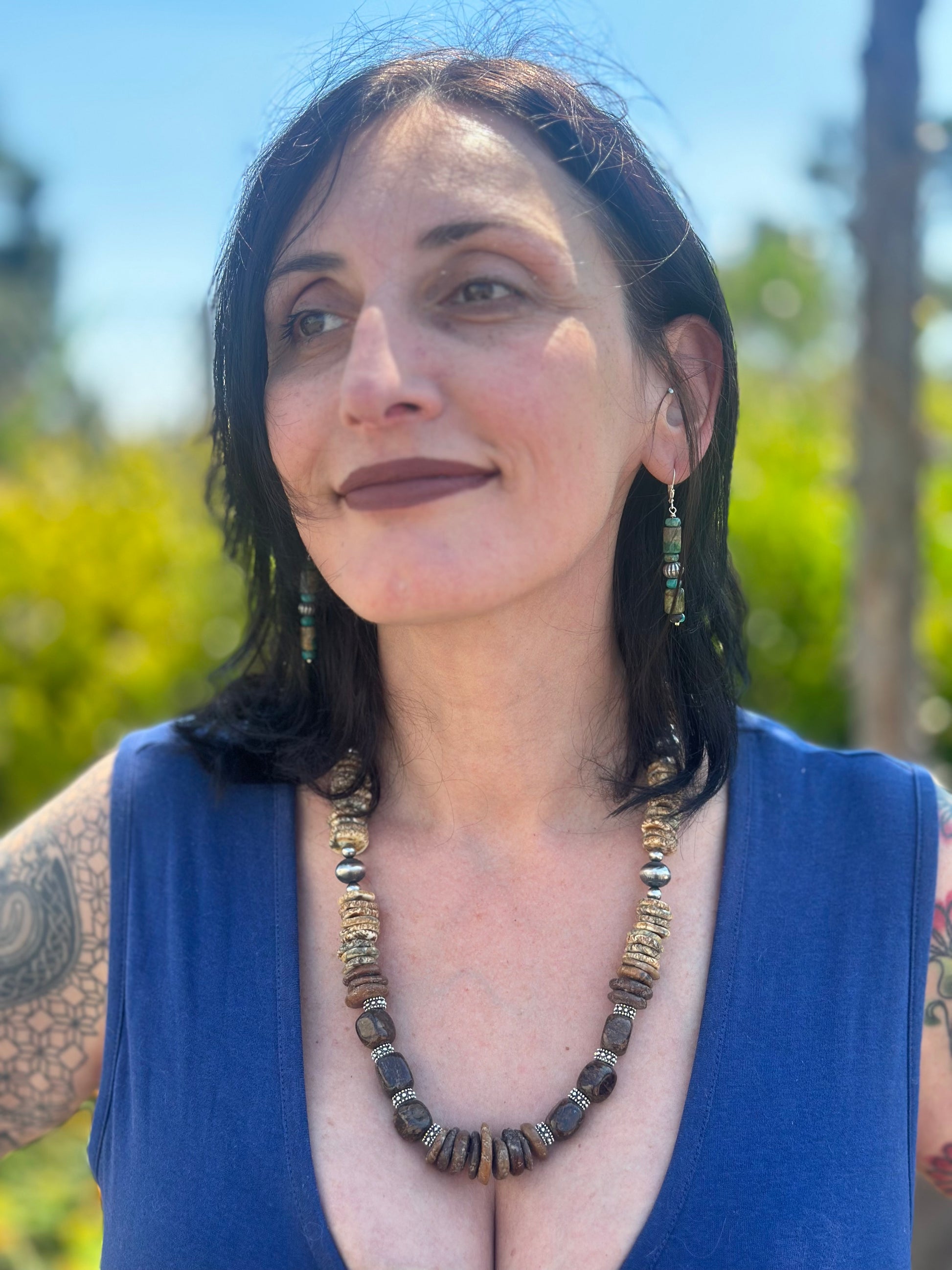 Authentic bronzite Navajo pearl statement necklace, inspired by Southwestern tradition. Artisan heirloom gift for weddings, anniversaries & graduations.