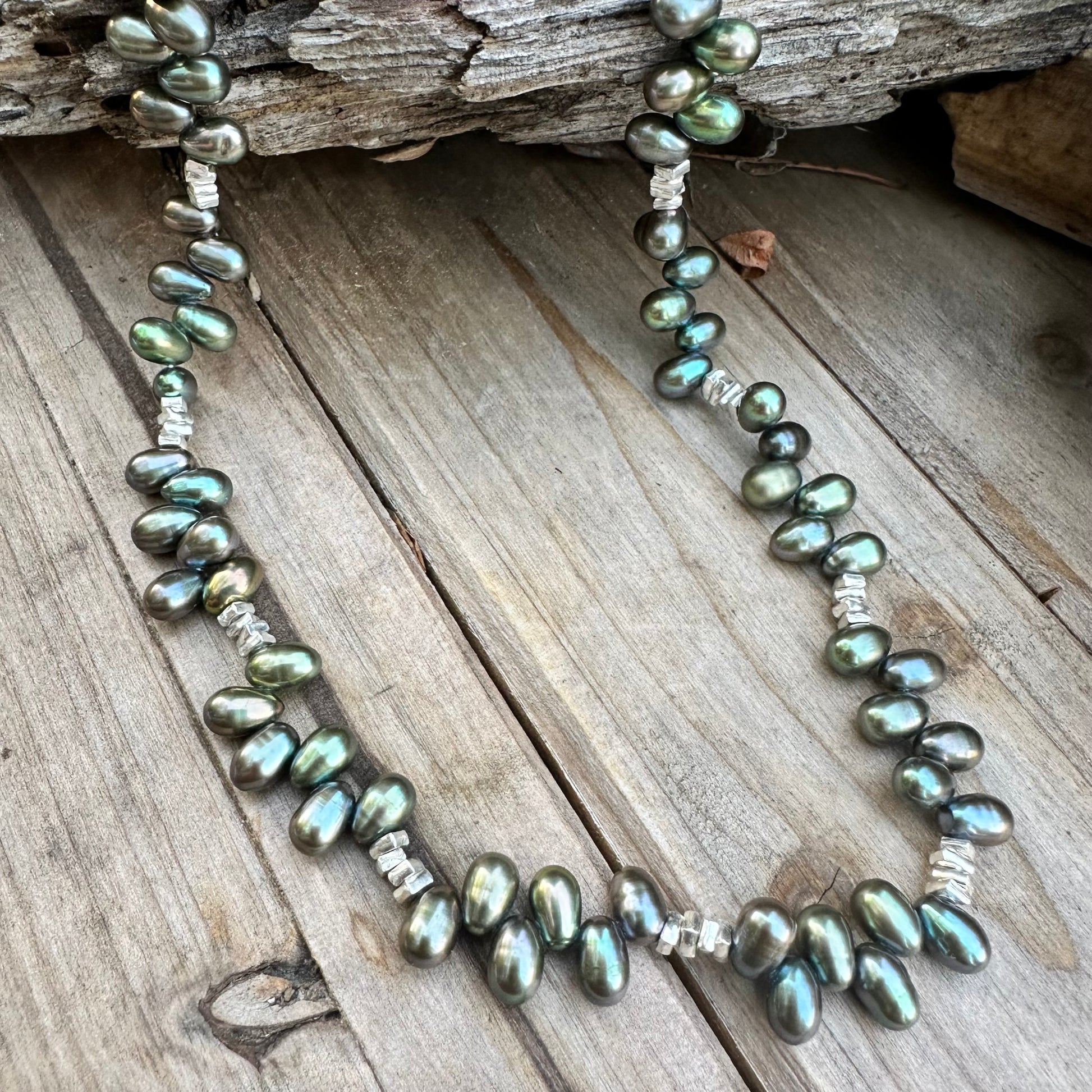 Authentic cultured pearl sterling necklace, embodying timeless elegance. Artisan jewelry gift for weddings, anniversaries & milestone events.
