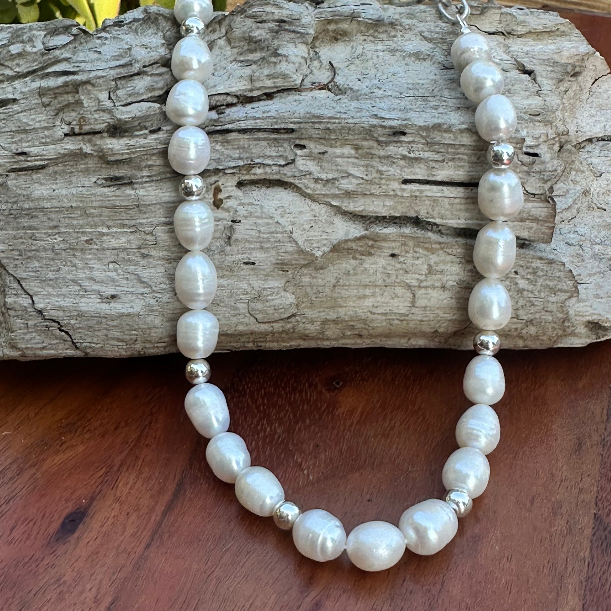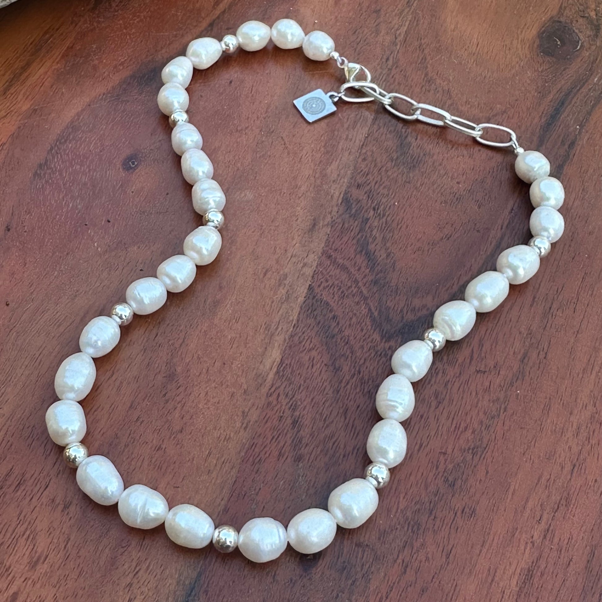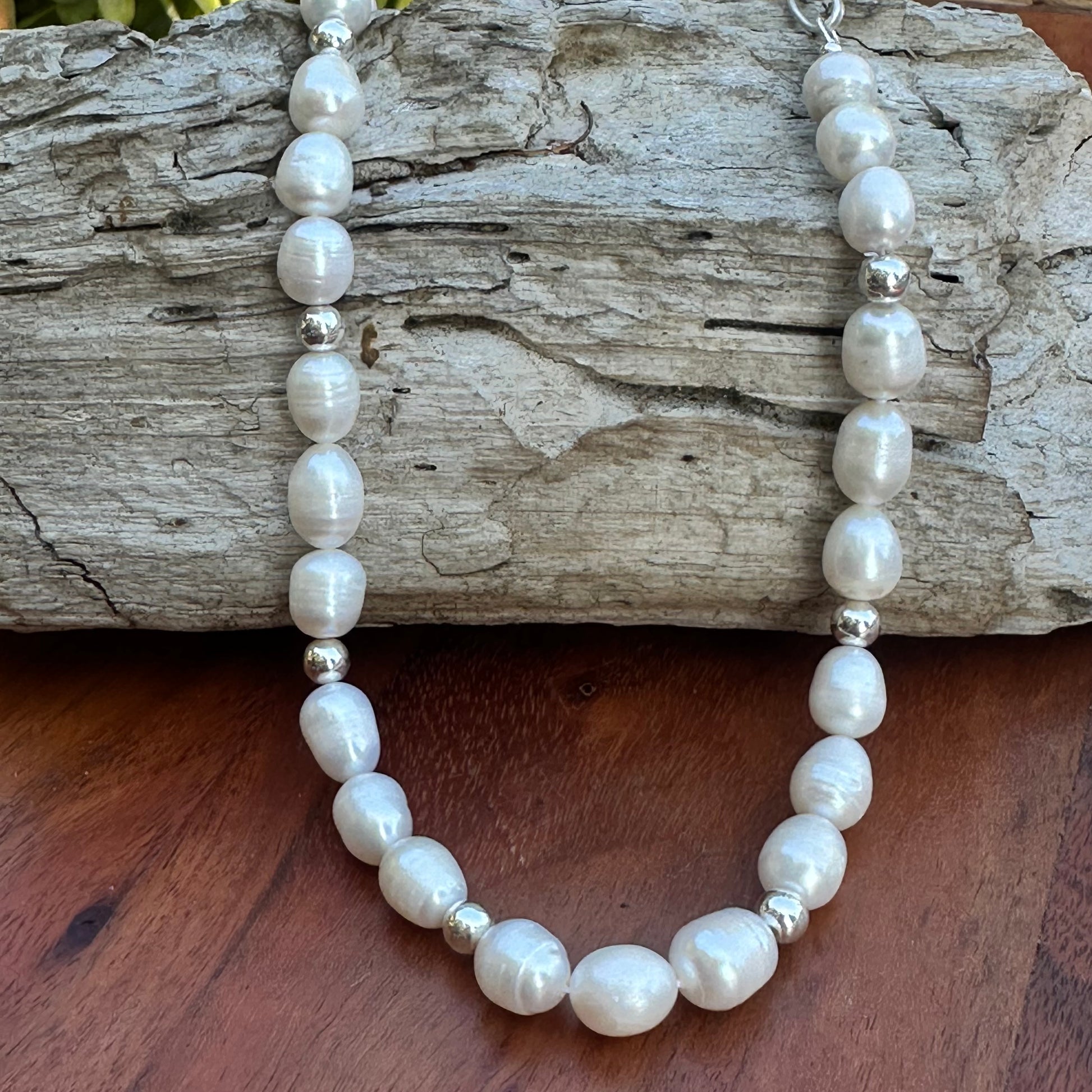 Authentic cultured pearl sterling silver necklace, timeless and classic. Artisan jewelry gift for weddings, anniversaries & graduations.