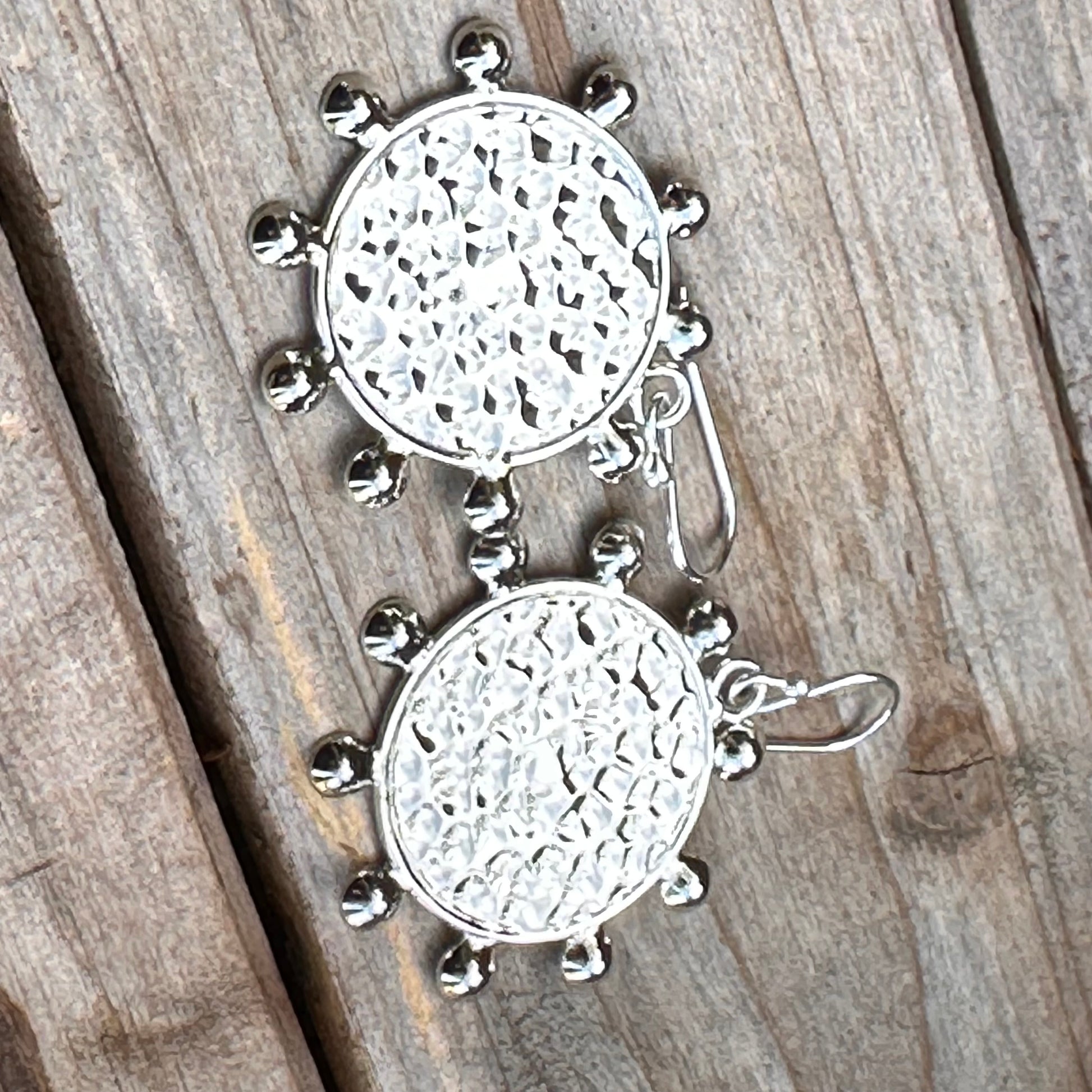 Authentic Taxco hammered sterling silver sun earrings, handcrafted in Mexico. Artisan jewelry gift for holidays, weddings & anniversaries.