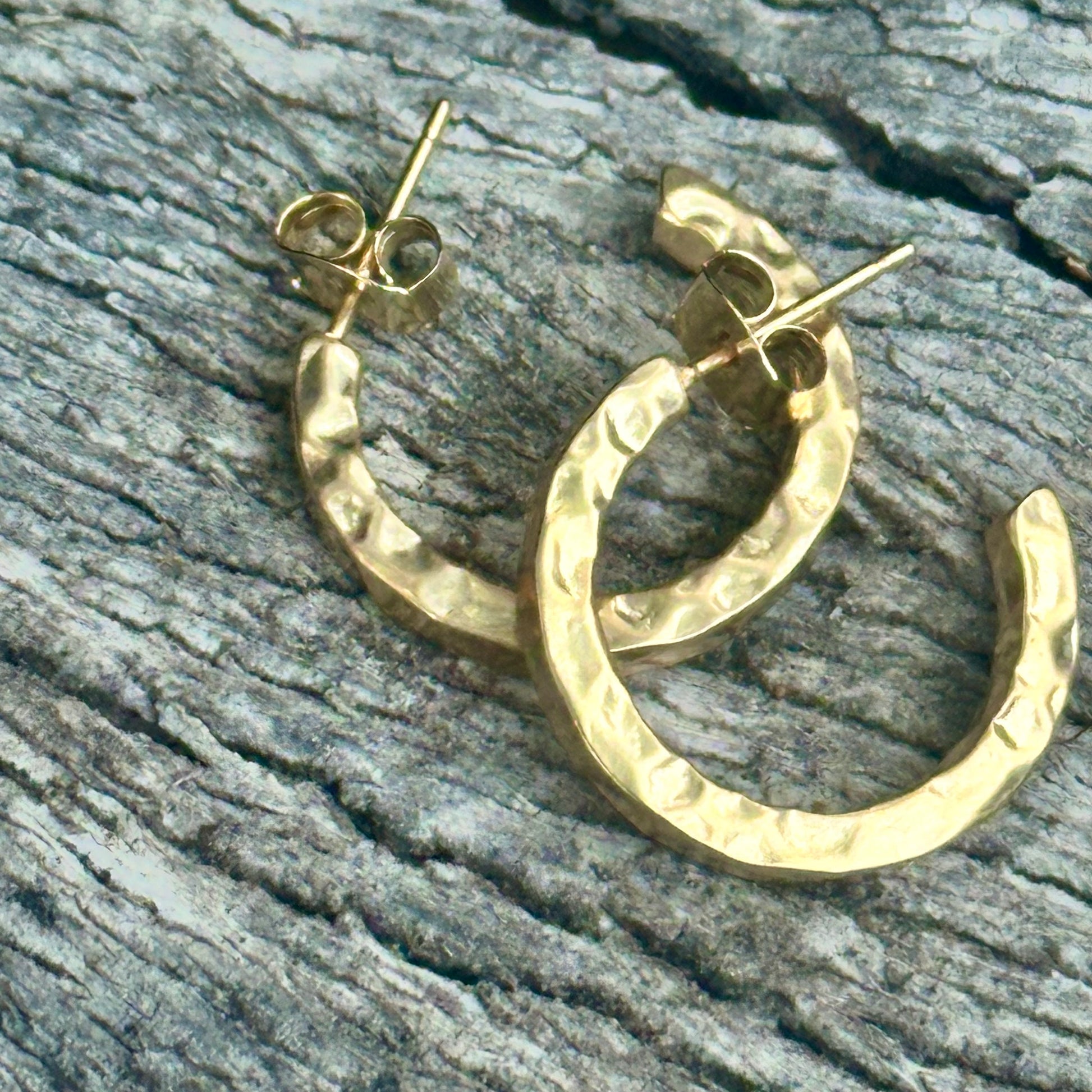 E0731 Hammered Gold Hoops Earrings (1.7”)