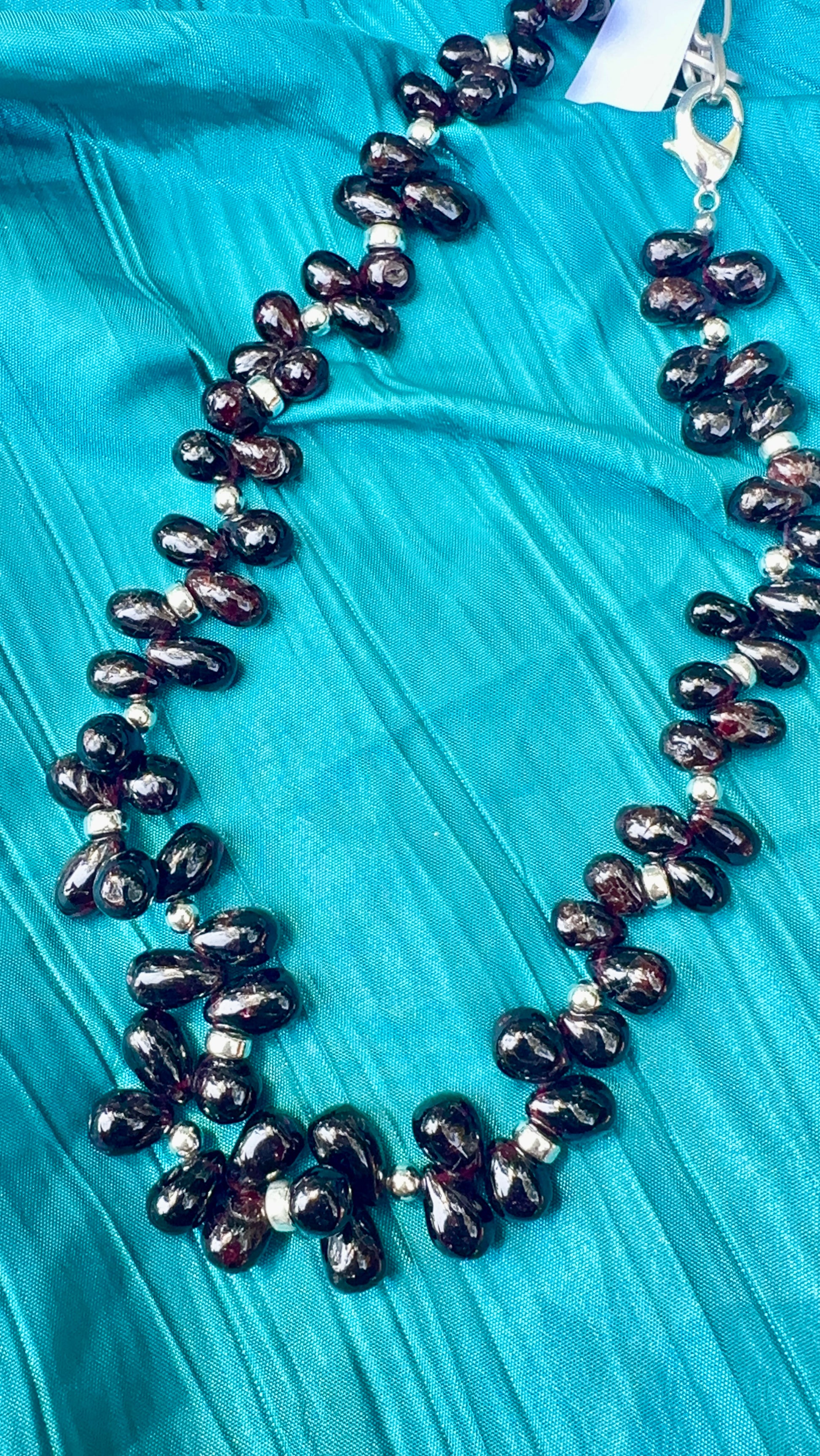 Handcrafted garnet sterling necklace, gemstone of passion and strength. Authentic artisan jewelry gift for anniversaries, weddings & holidays.