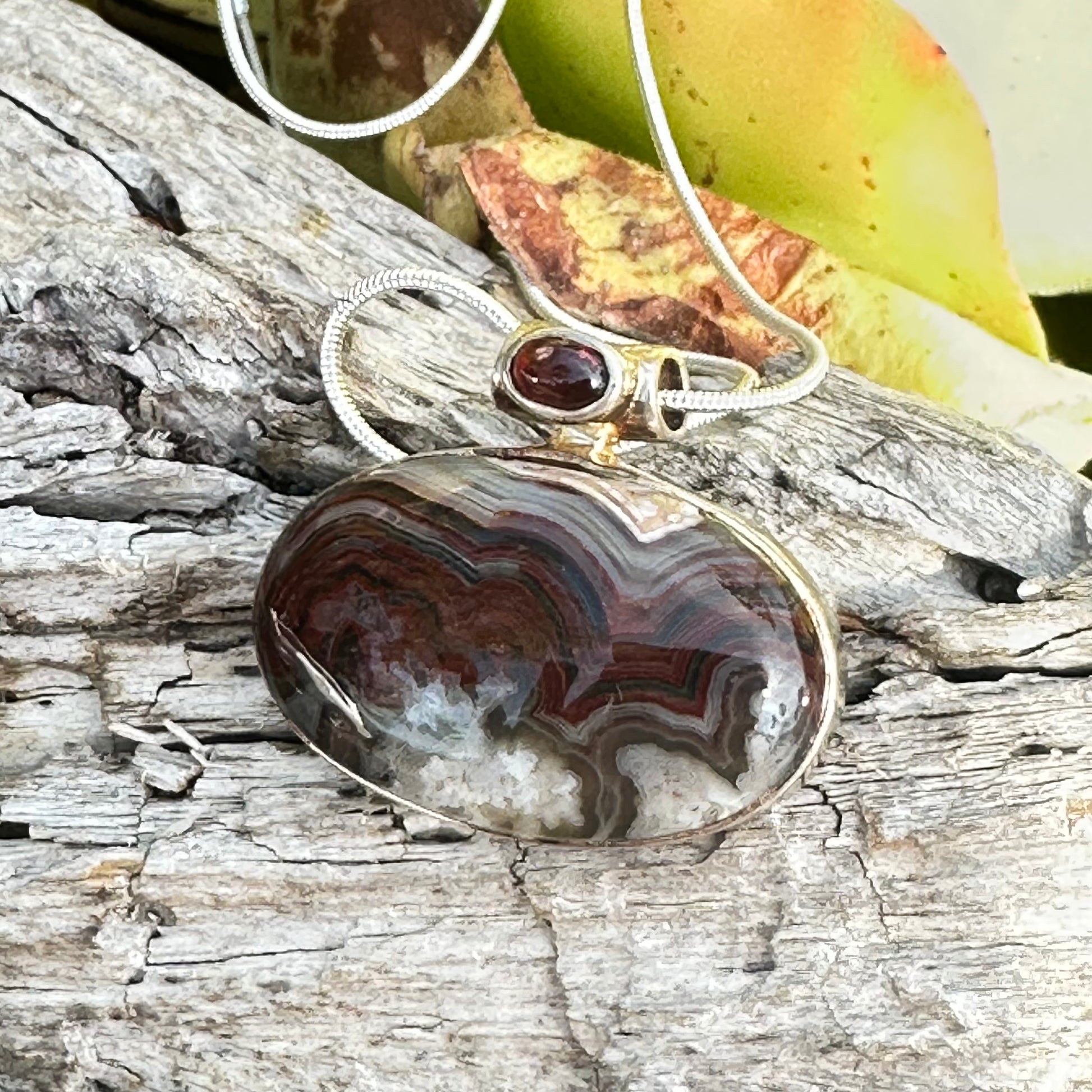 Jasper, Amber, & Sterling Silver Pendant (1” x 1.4”) on 18" Sterling Silver Chain