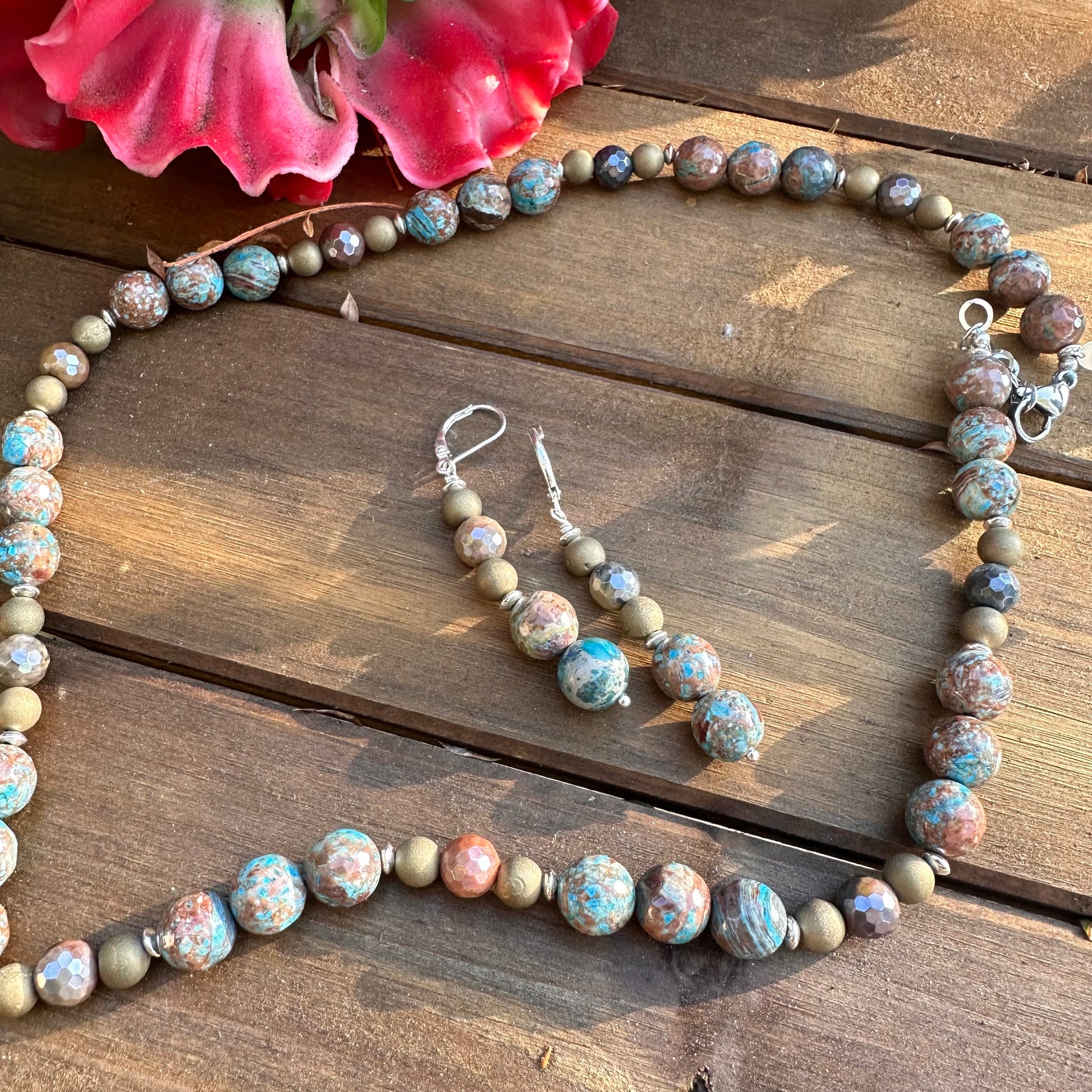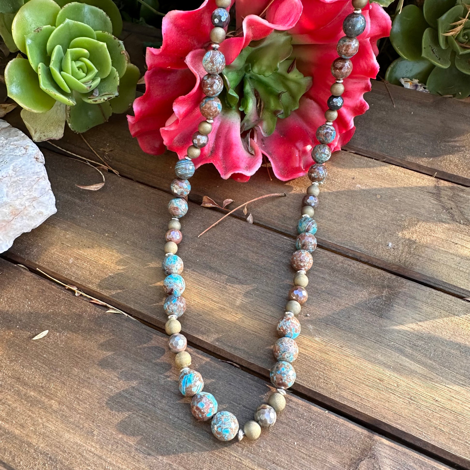 Jasper Hematite Bronzite Sterling Silver Necklace 18”-20”
