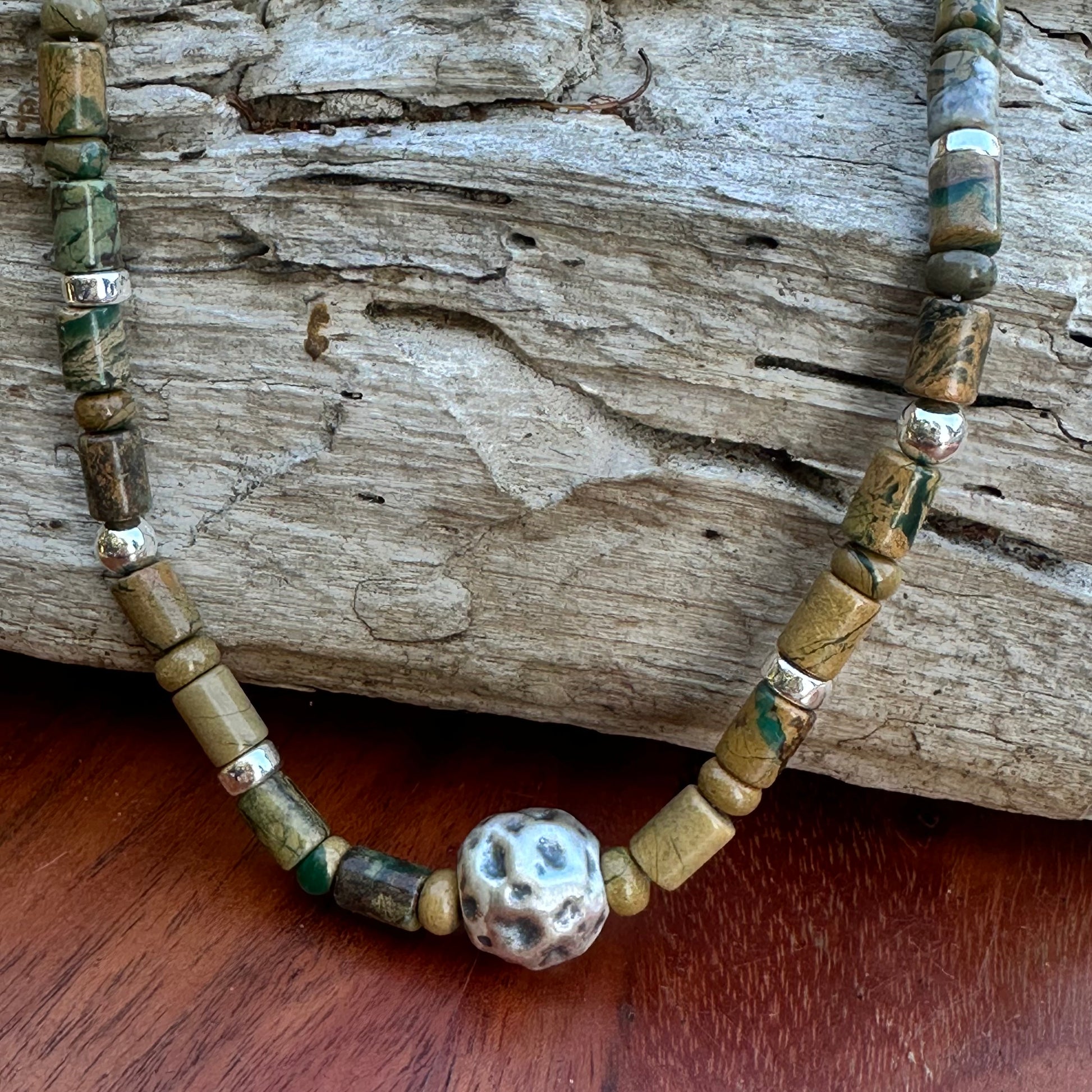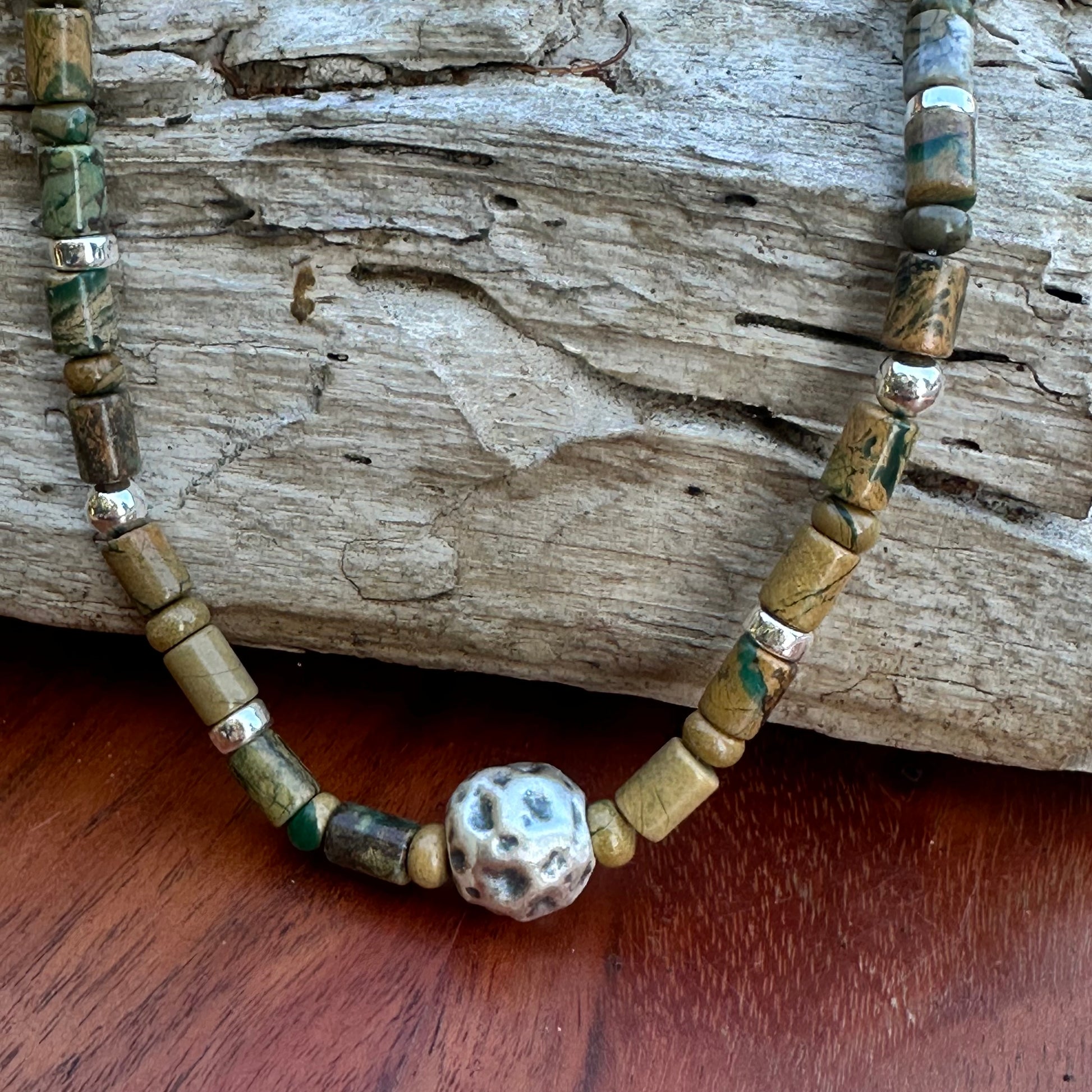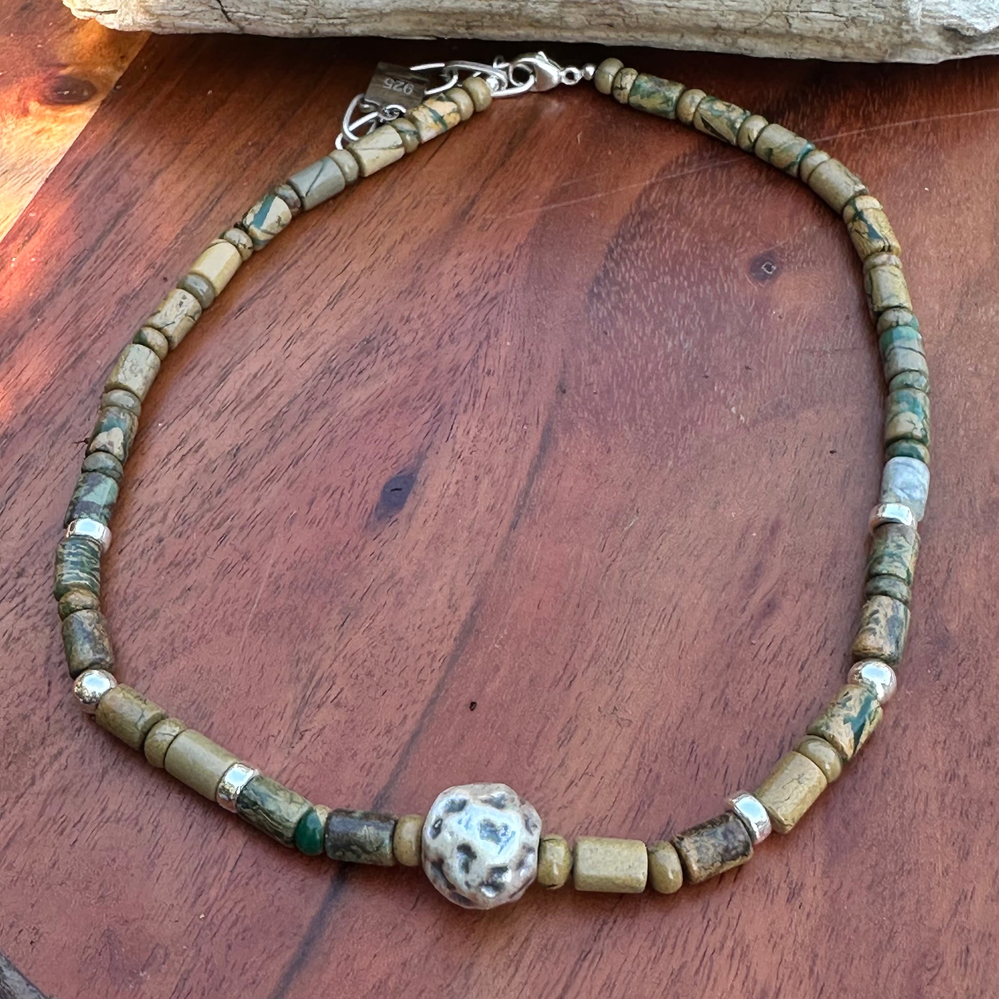 Handcrafted jasper sterling necklace, grounding gemstone design. Authentic artisan jewelry gift for weddings, anniversaries & everyday elegance.