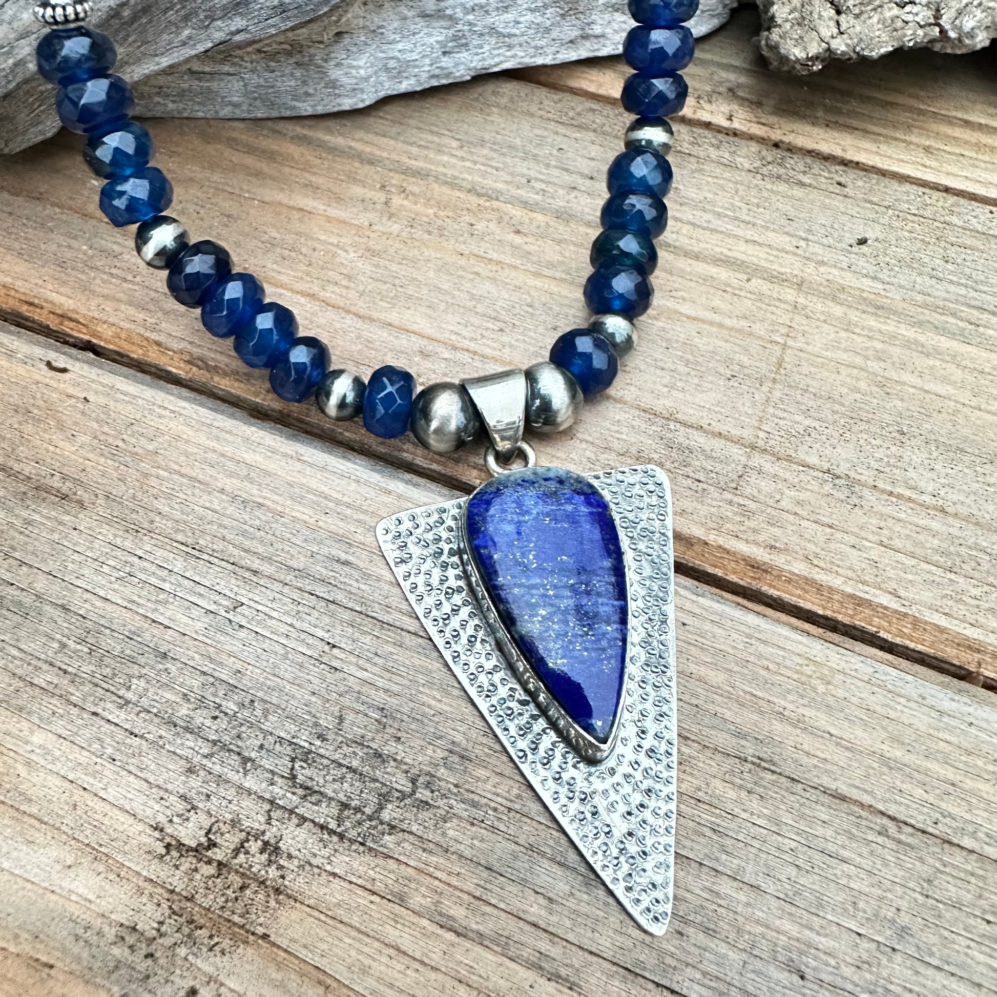 Authentic lapis Navajo pearl sterling necklace, artisan heritage piece with deep blue elegance. Perfect gift for weddings, anniversaries & milestones.