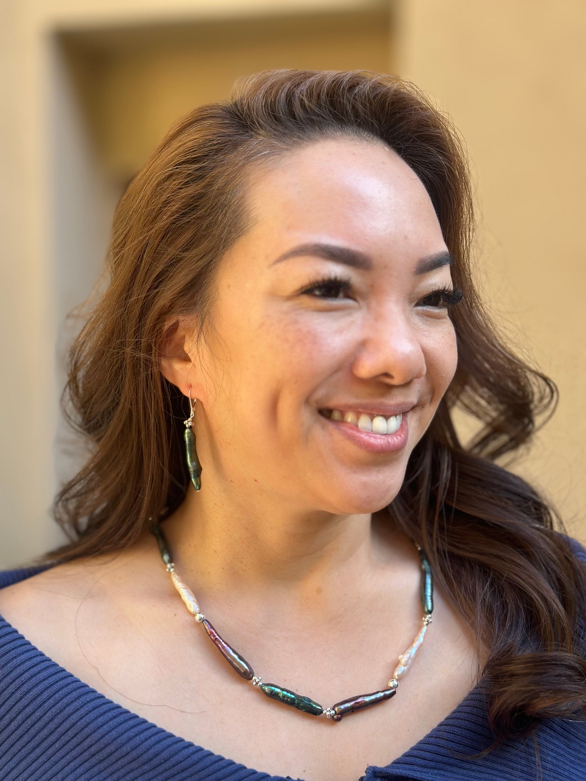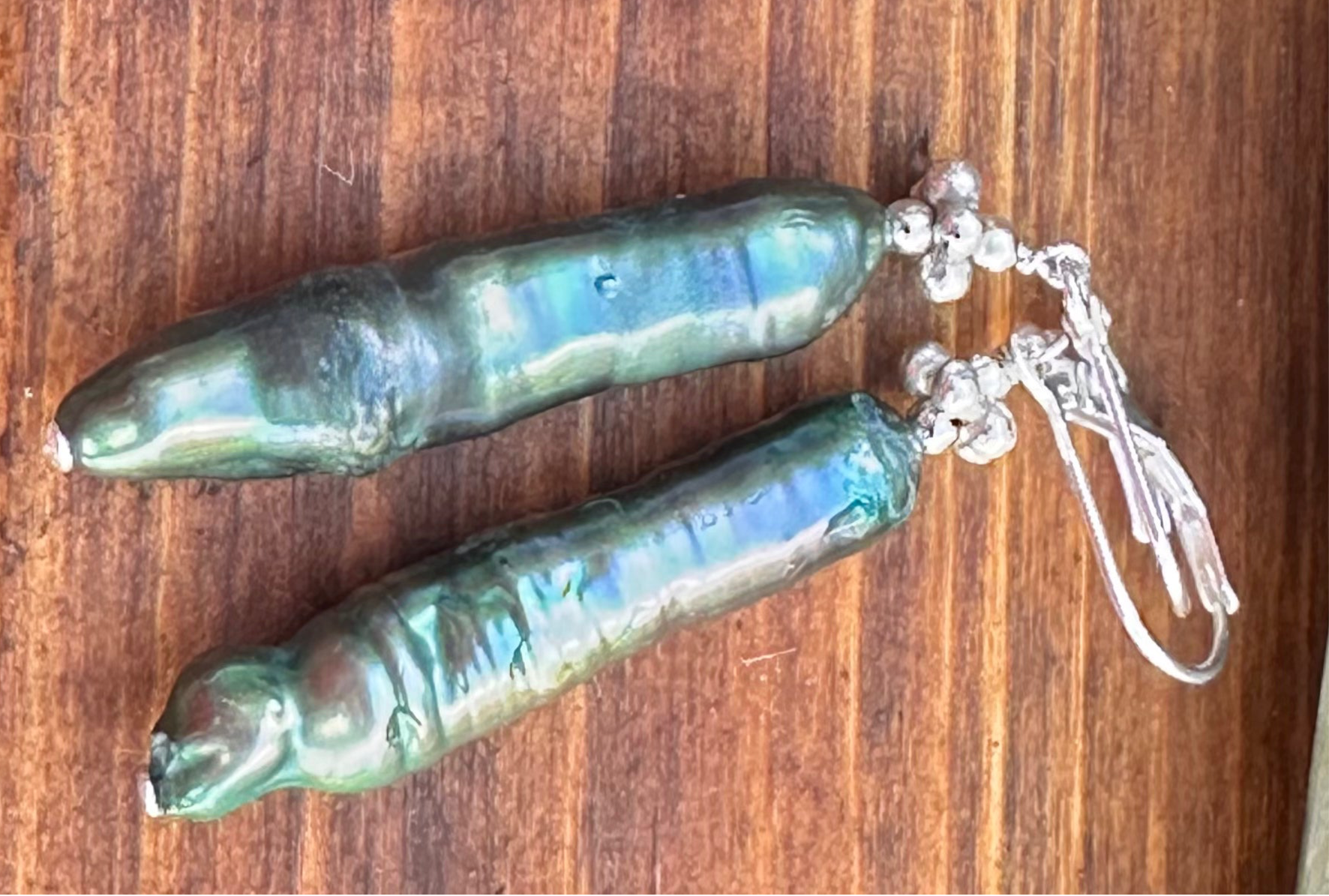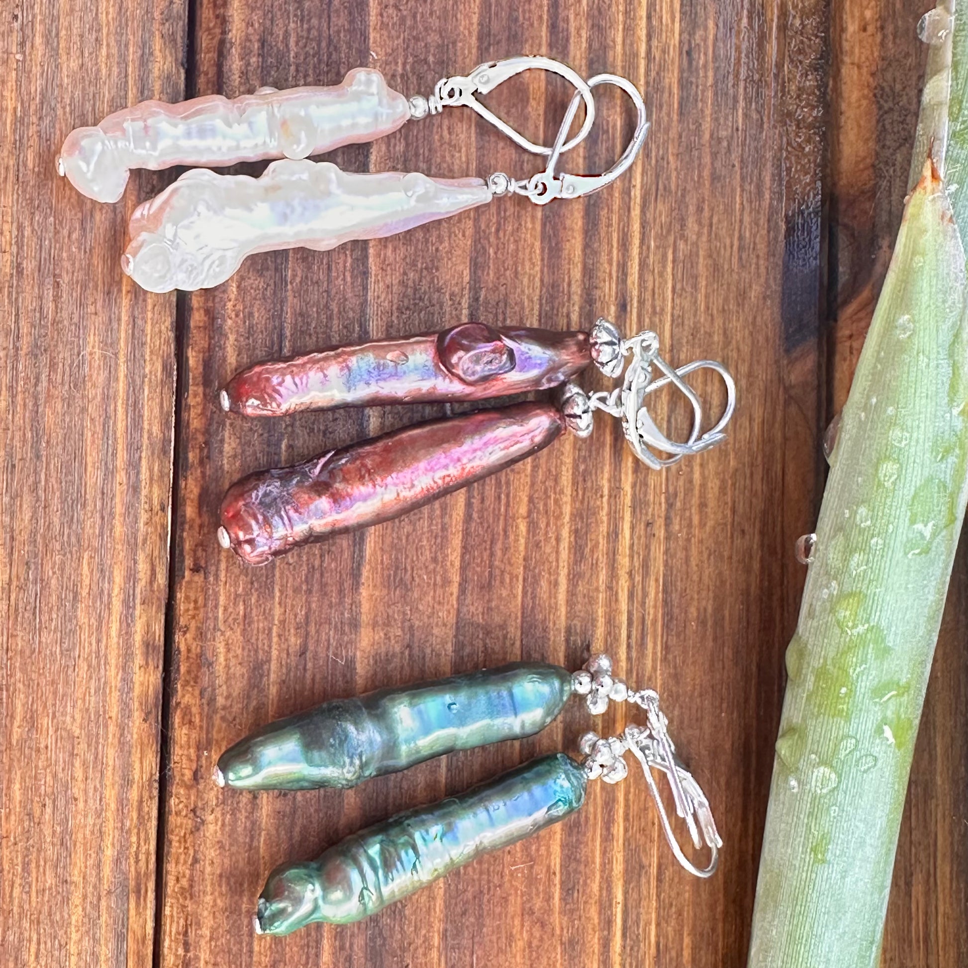 Handcrafted linear pearl earrings, classic pearls reimagined with artisan style. Perfect jewelry gift for weddings, anniversaries & birthdays.