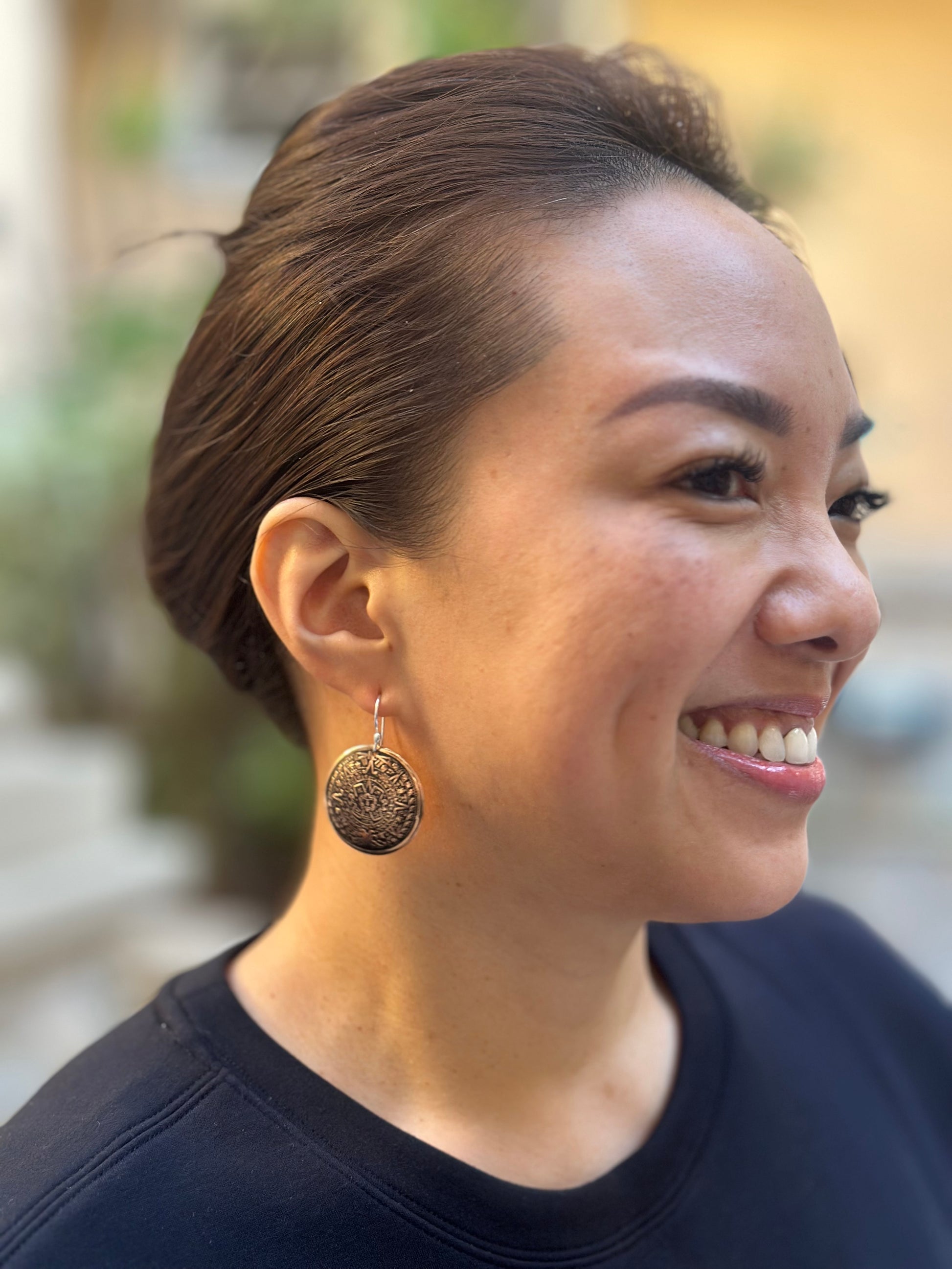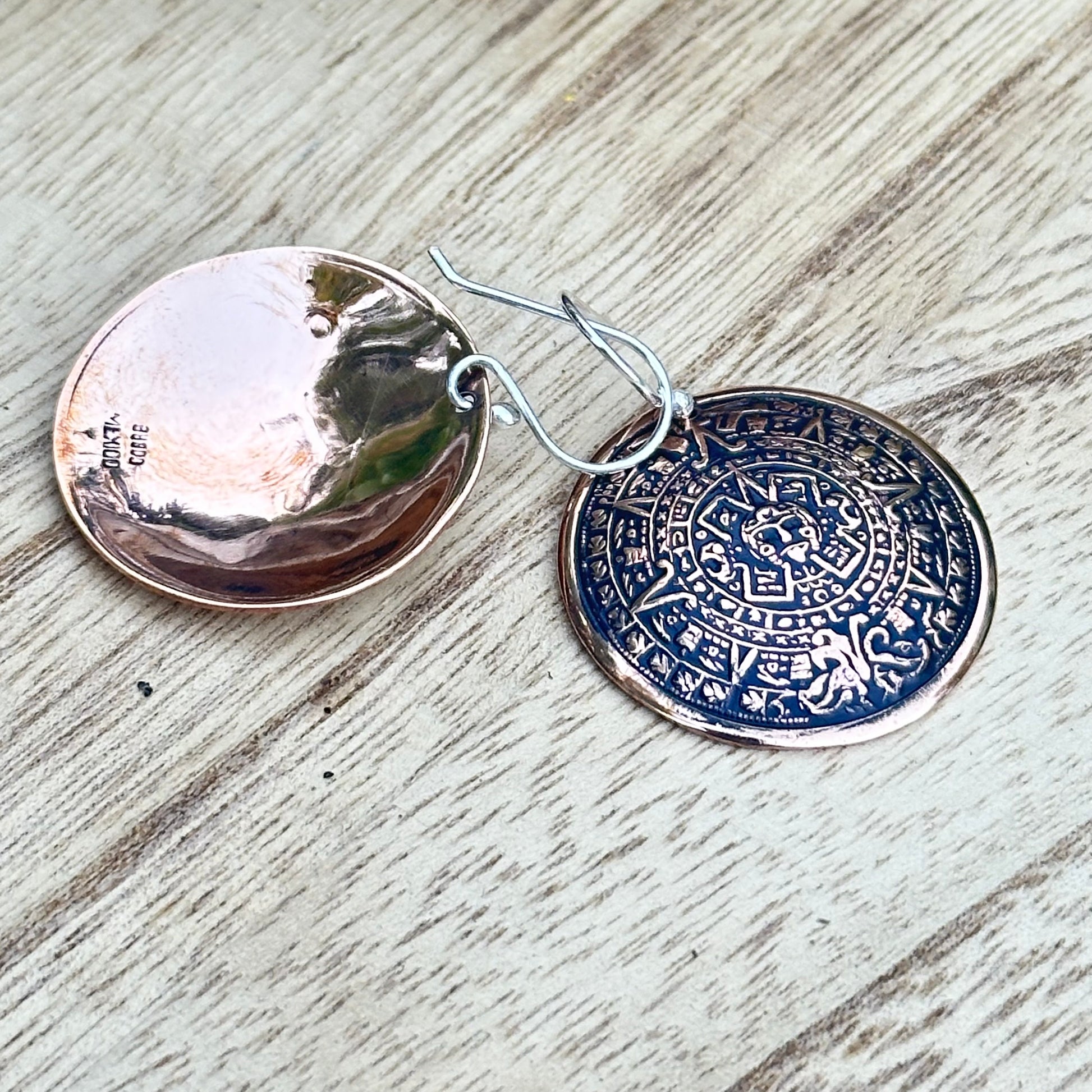 Artisan copper earrings inspired by Aztec & Mayan heritage. Handcrafted statement gift for birthdays, weddings & cultural celebrations.