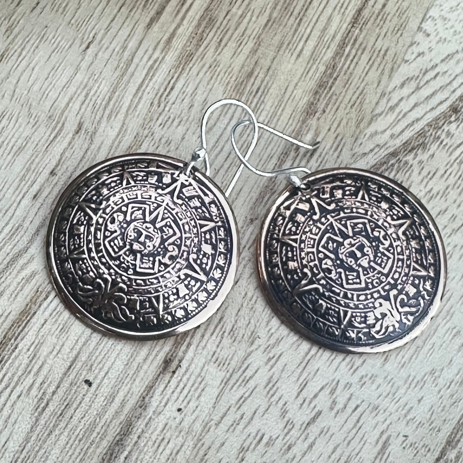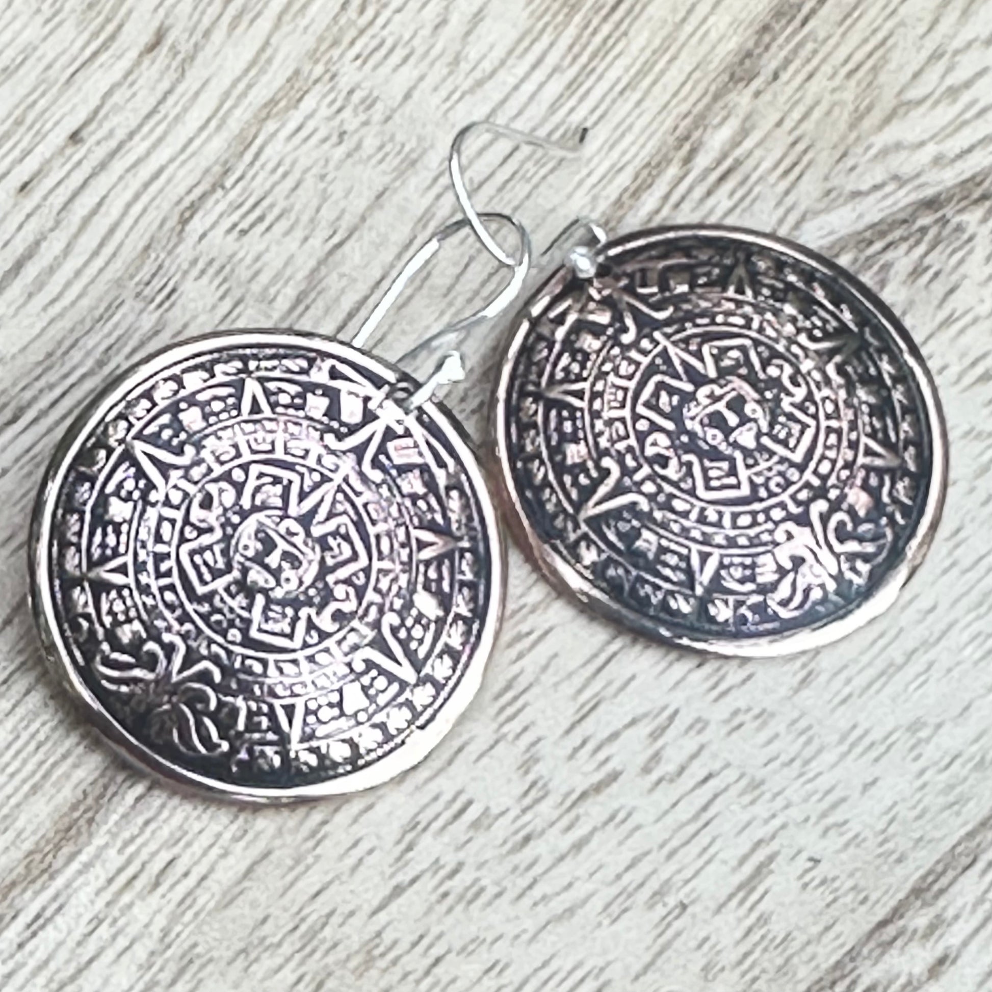 Mexico Aztec Mayan Copper Earrings 1.75”