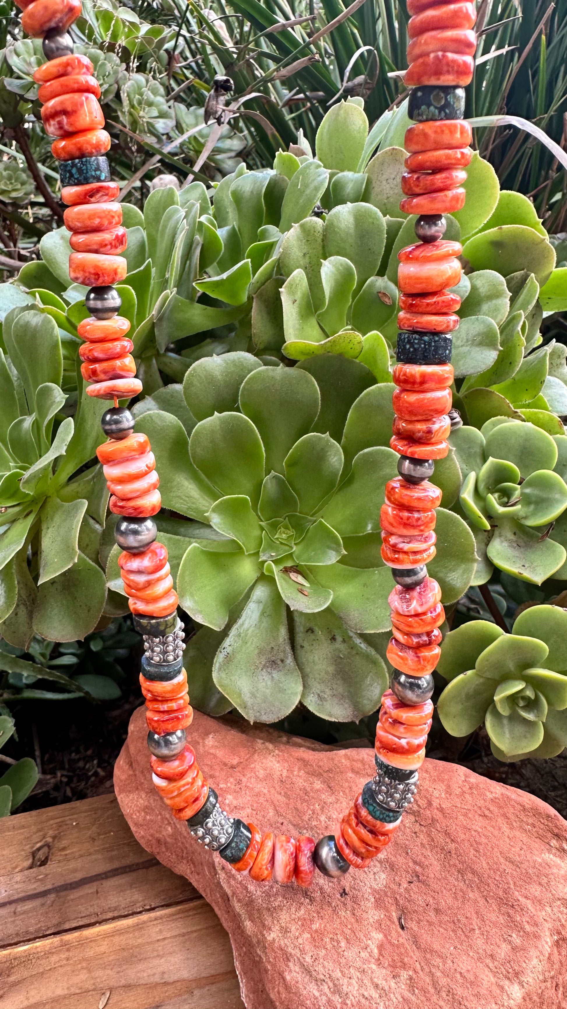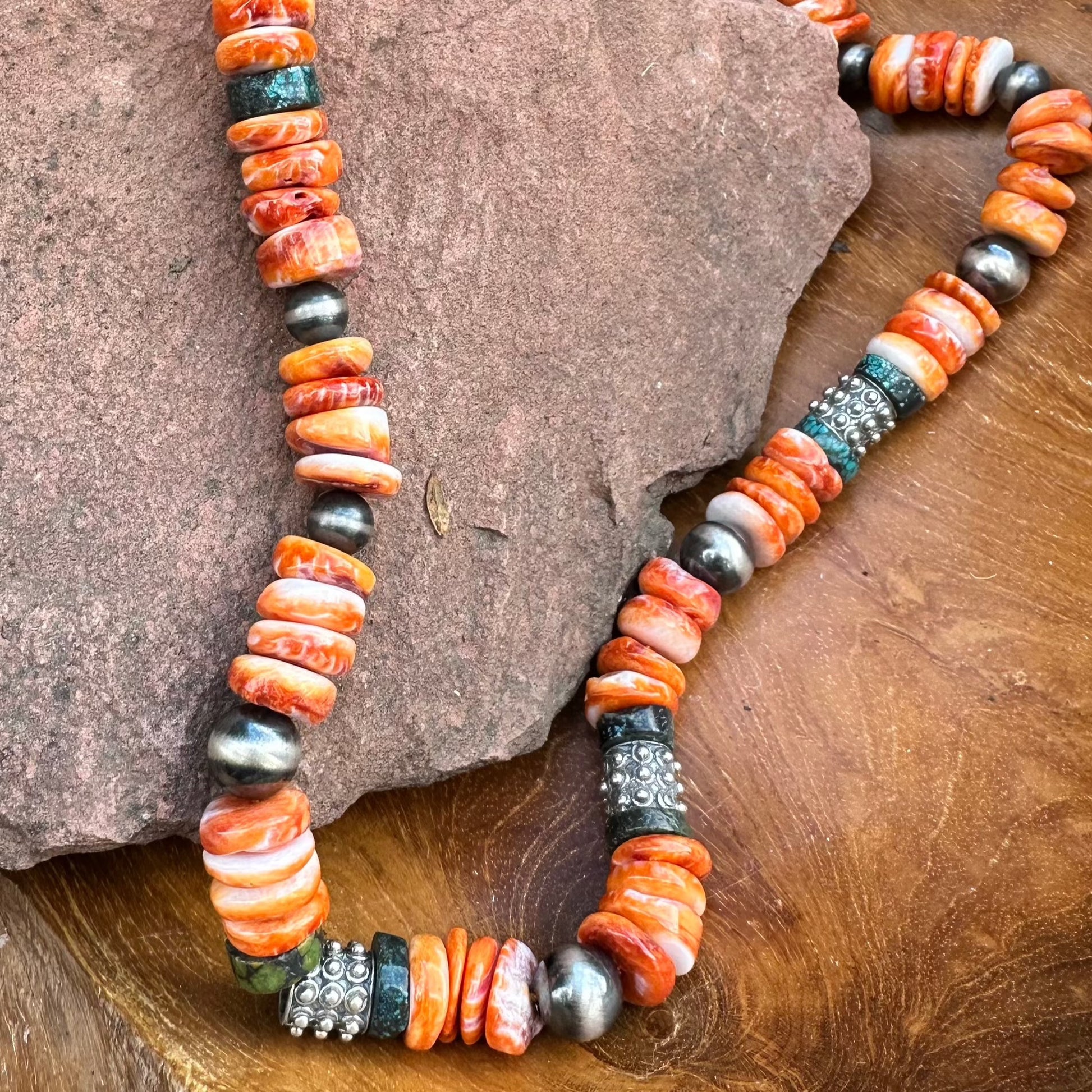 Spiny Oyster Navajo Pearls sterling silver necklace