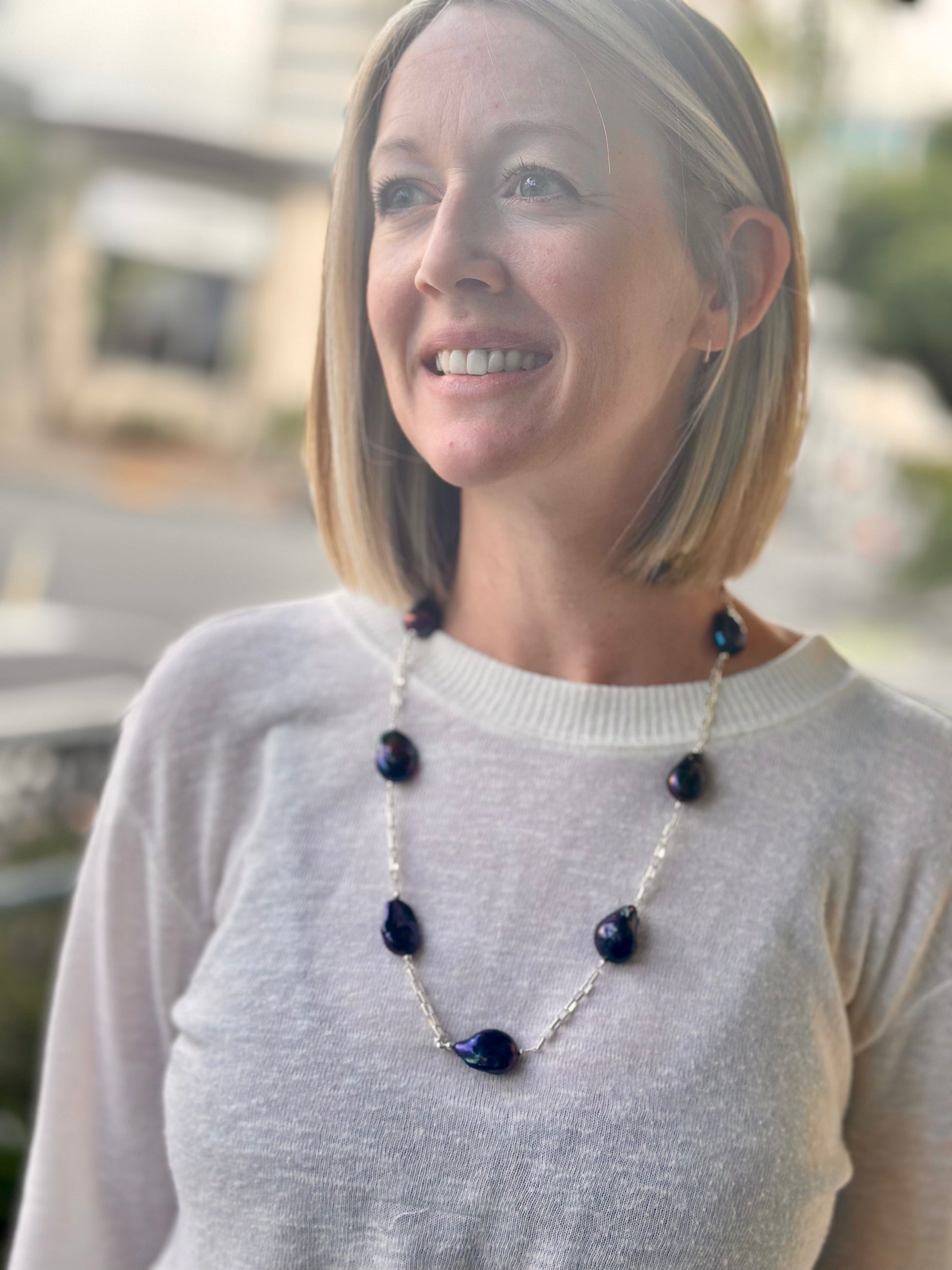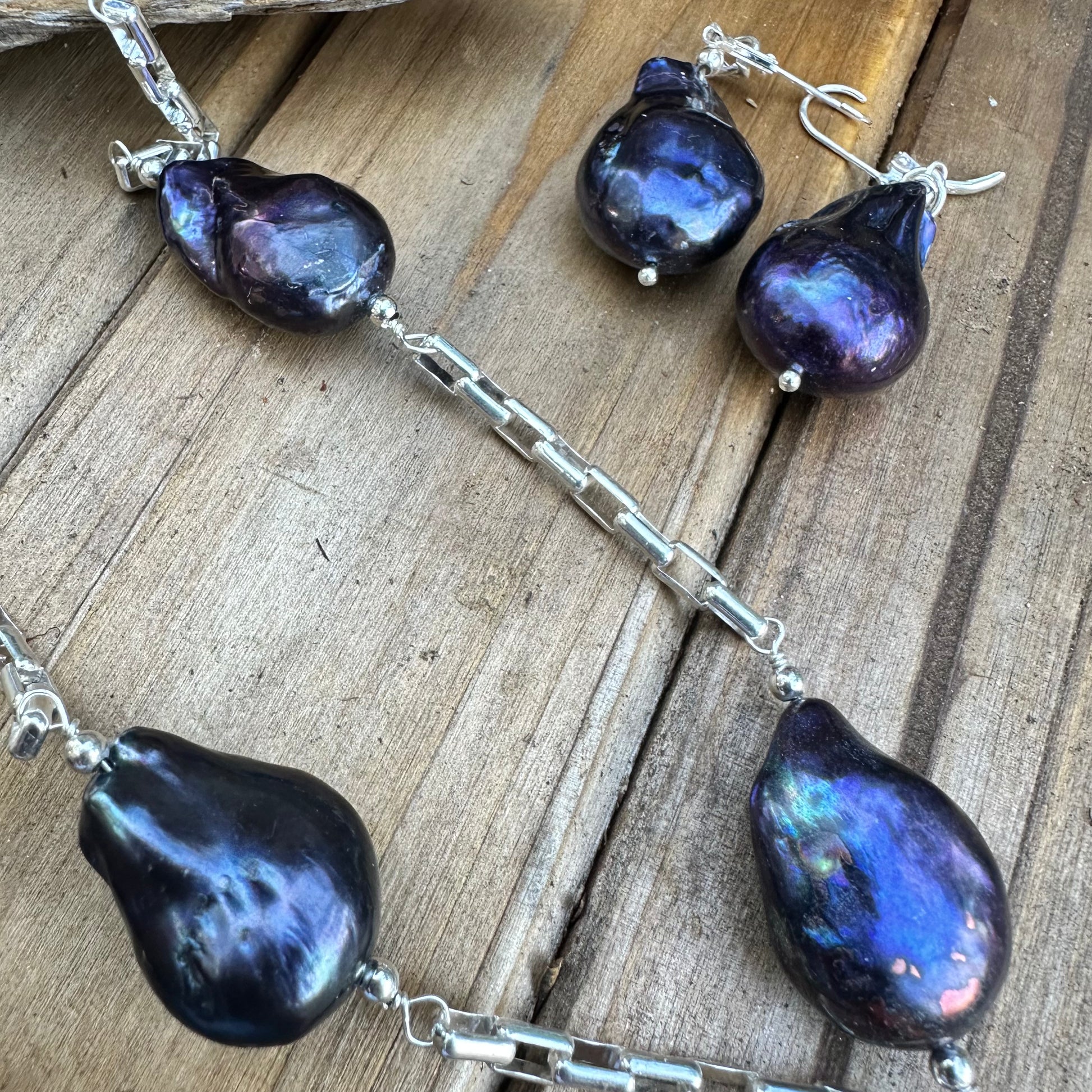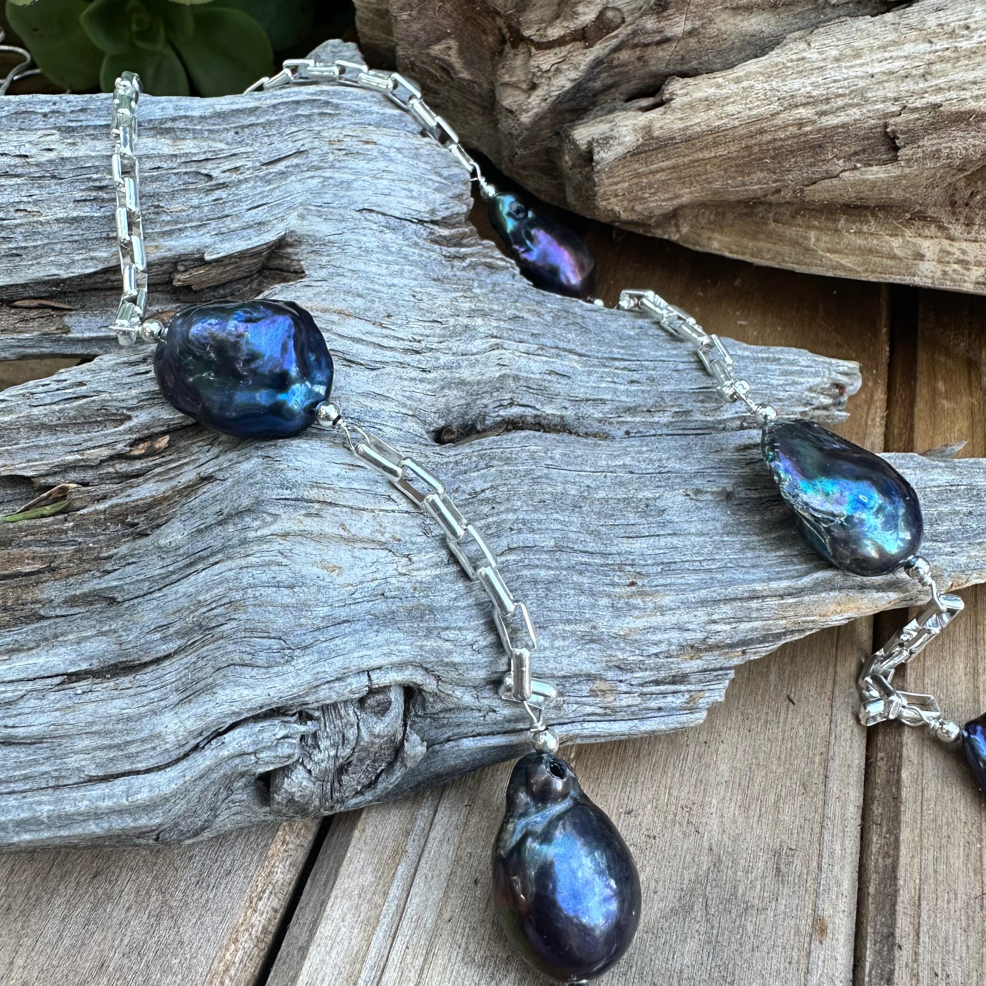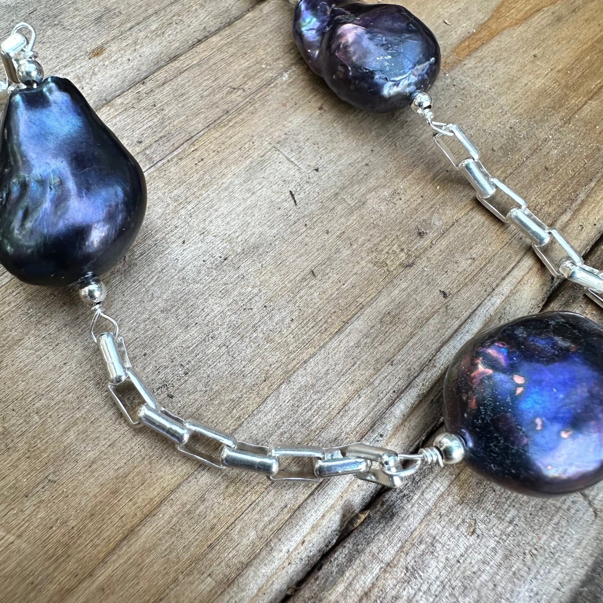 N0621. Baroque Pearls Sterling Necklace (28”)