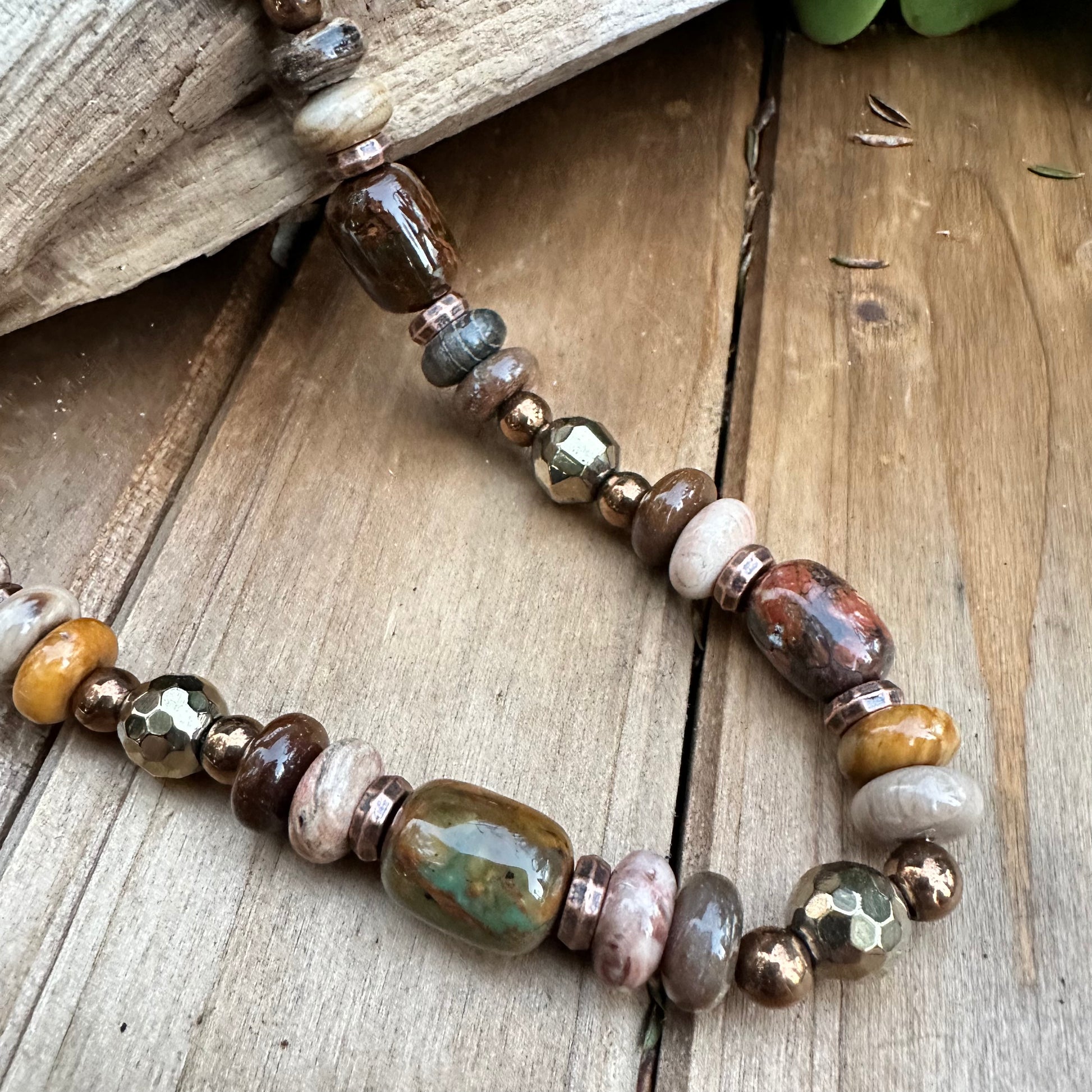 N0632 Dendrite Jasper Copper Hematite Stone Necklace (18”-20”)