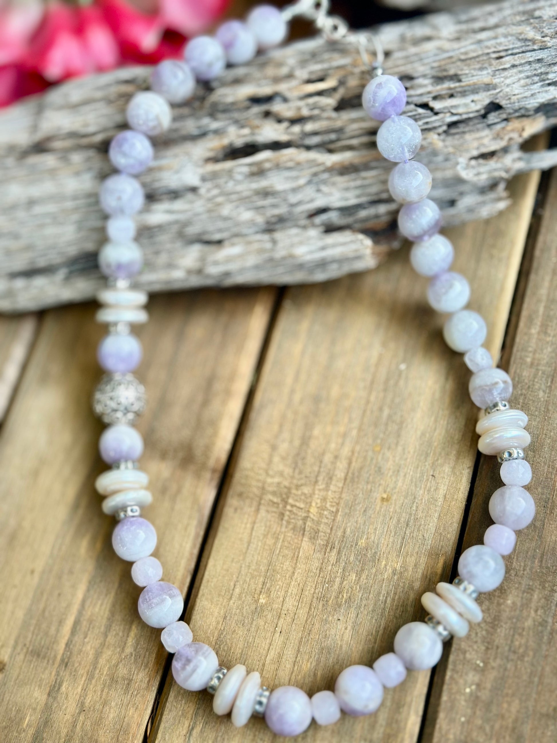 N0861 Lavender Jade Pearl Sterling Necklace (18”-20”)