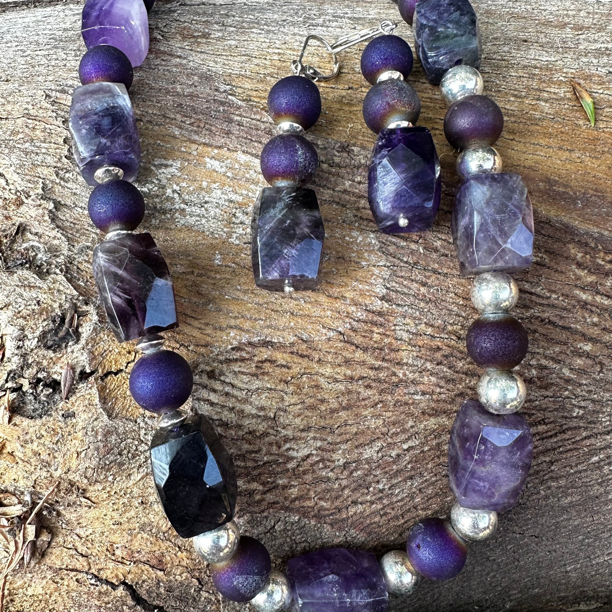 N0883 Korean Amethyst Druzy Necklace (18”-20”)