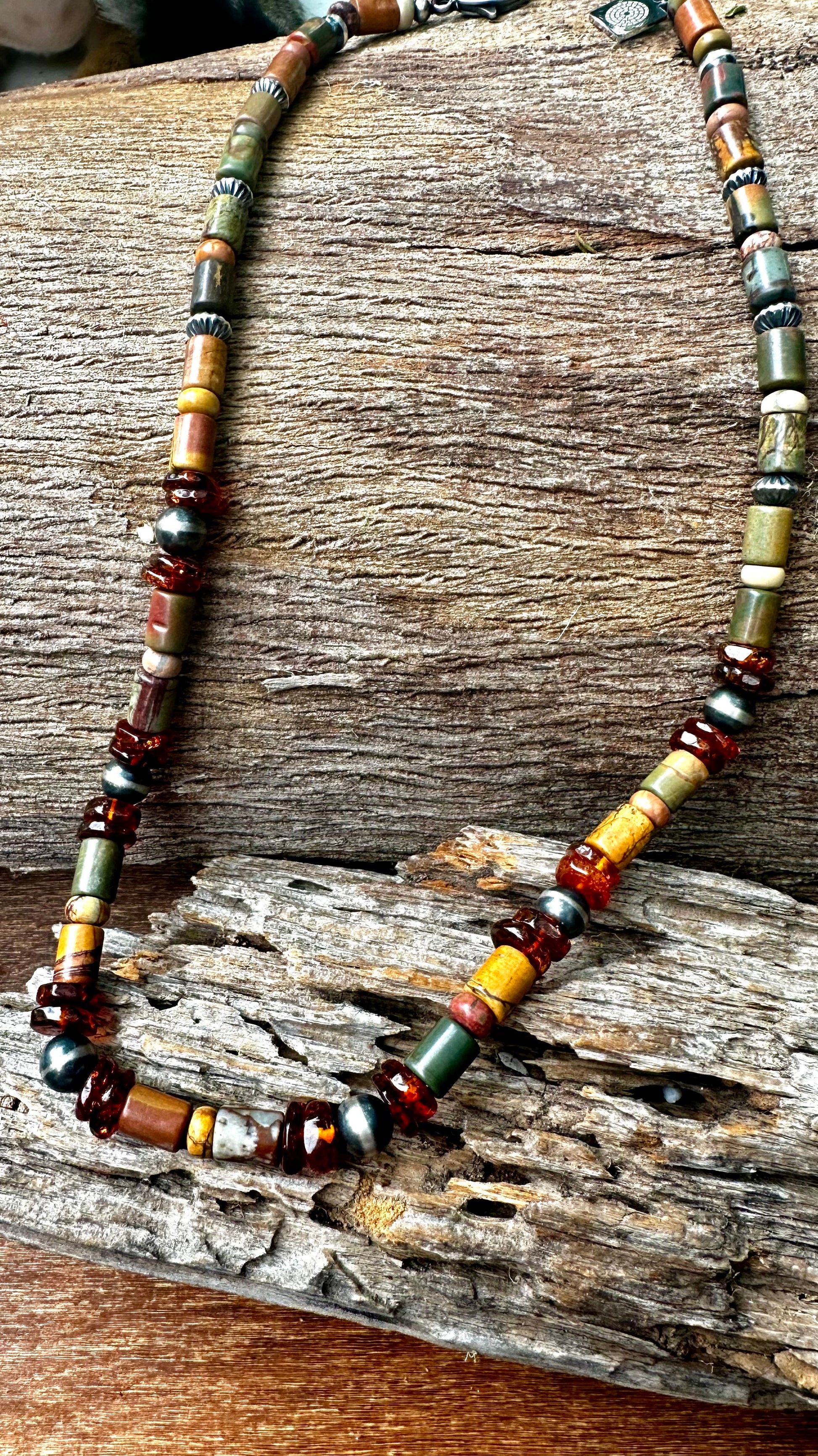 N0886 Amber Jasper Navajo Pearls Necklace (18”-20”)