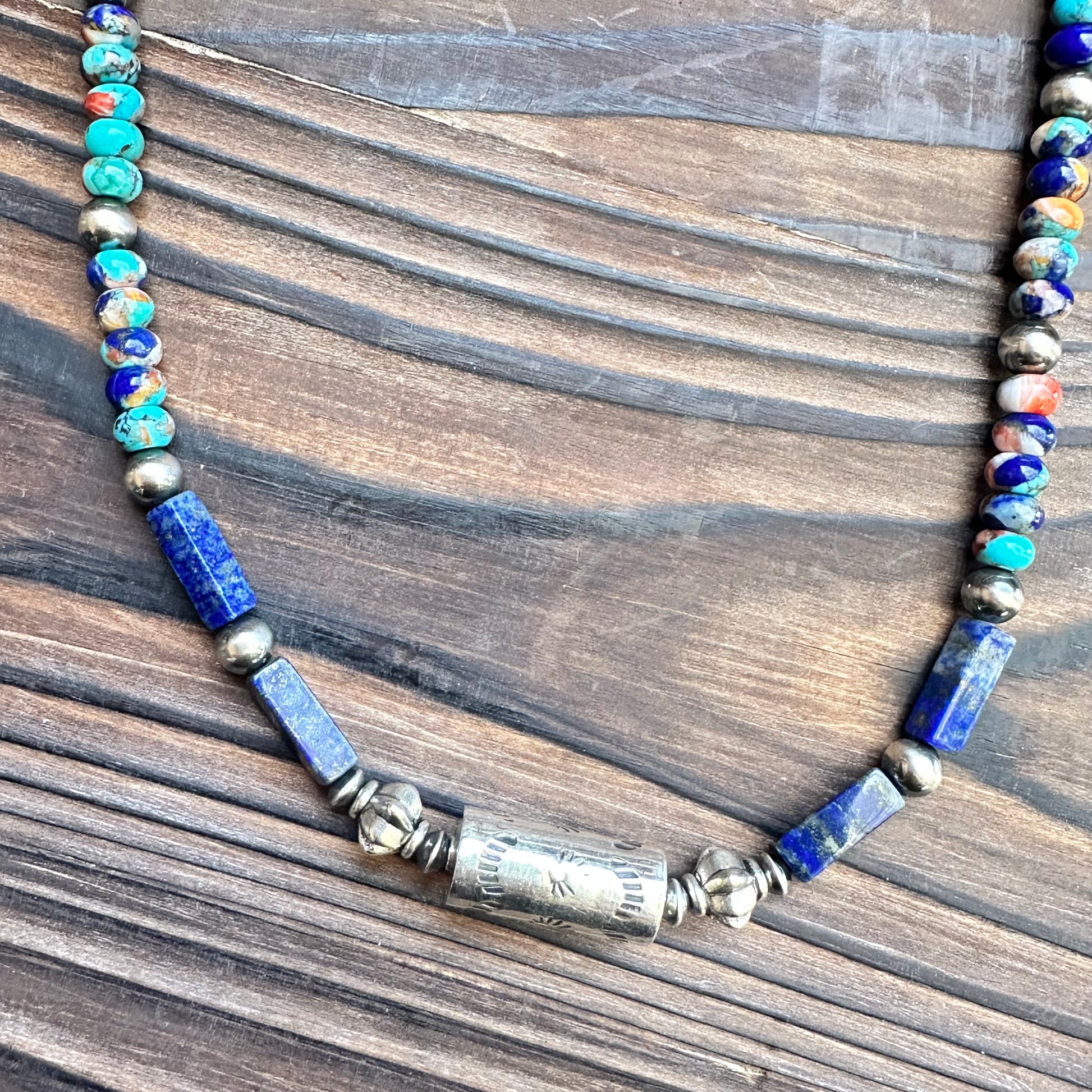 Spiny Oyster Turquoise Barrel Navajo Pearl Necklace (18"-20")