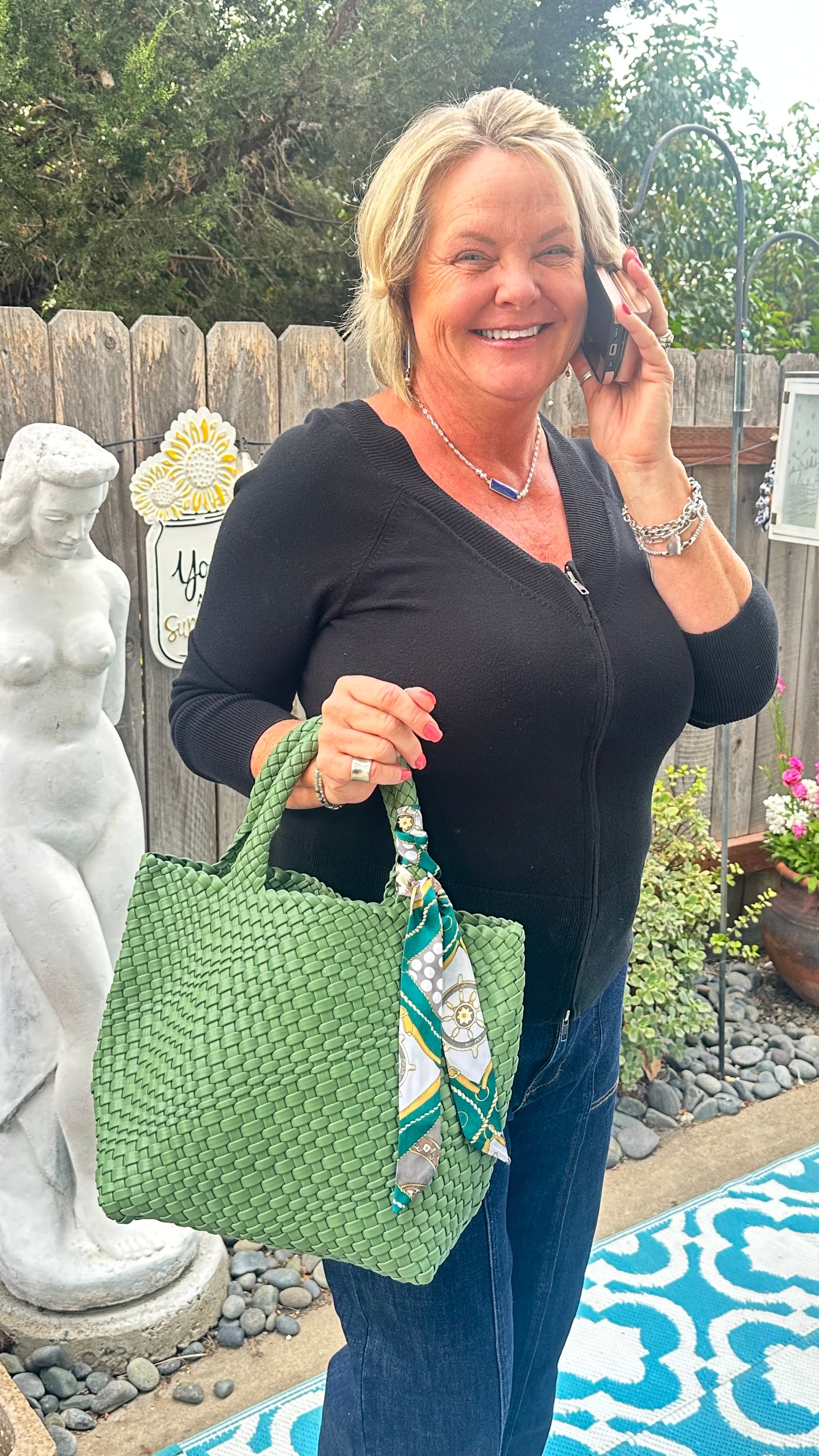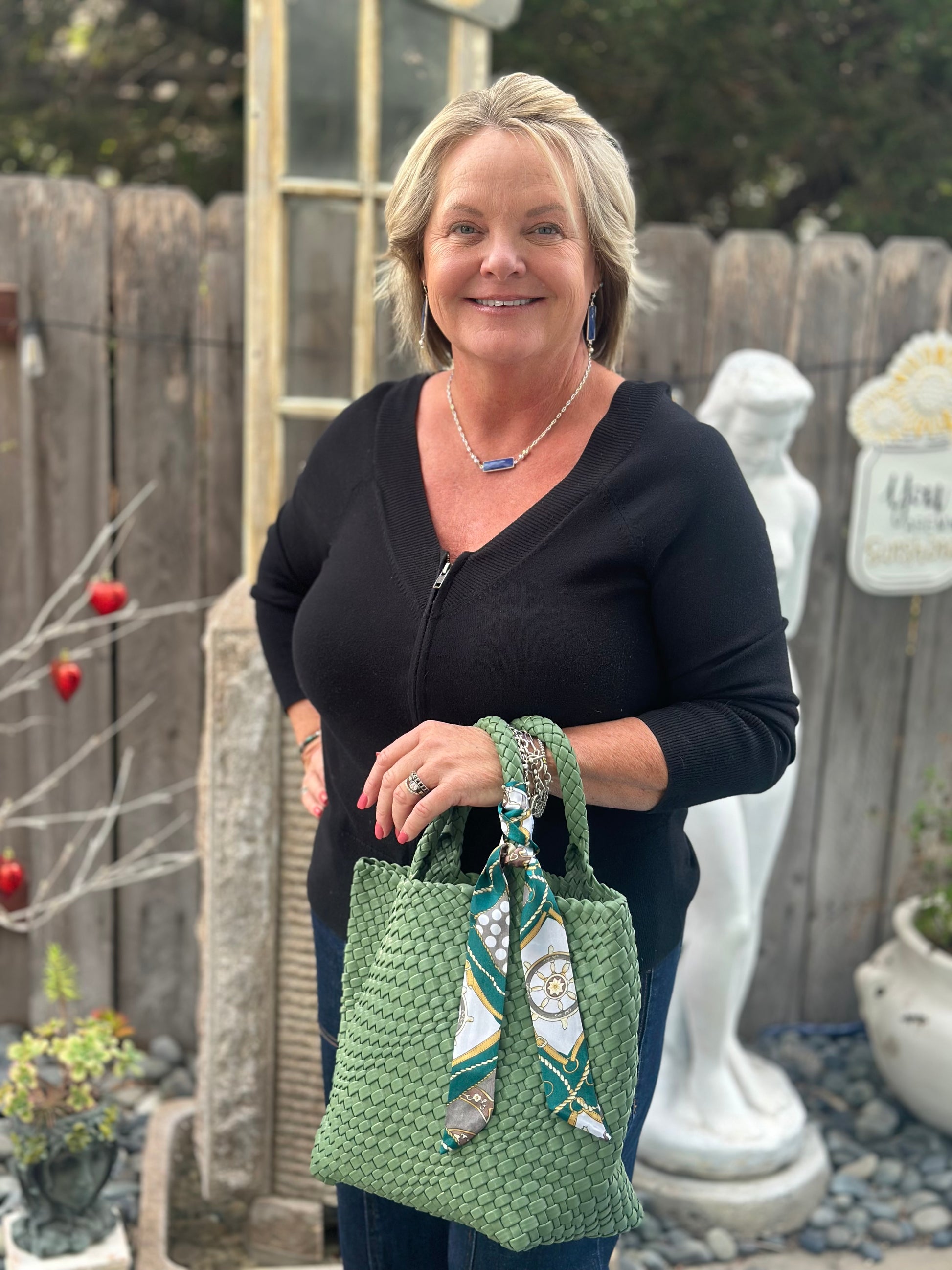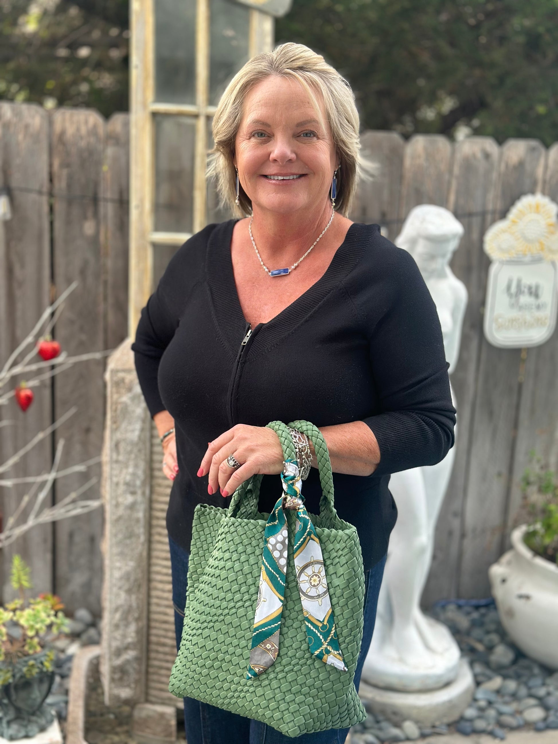 Stunning and sturdy! Handwoven Neoprene Bag - fully lined. Includes a free scarf and free matching wallet!