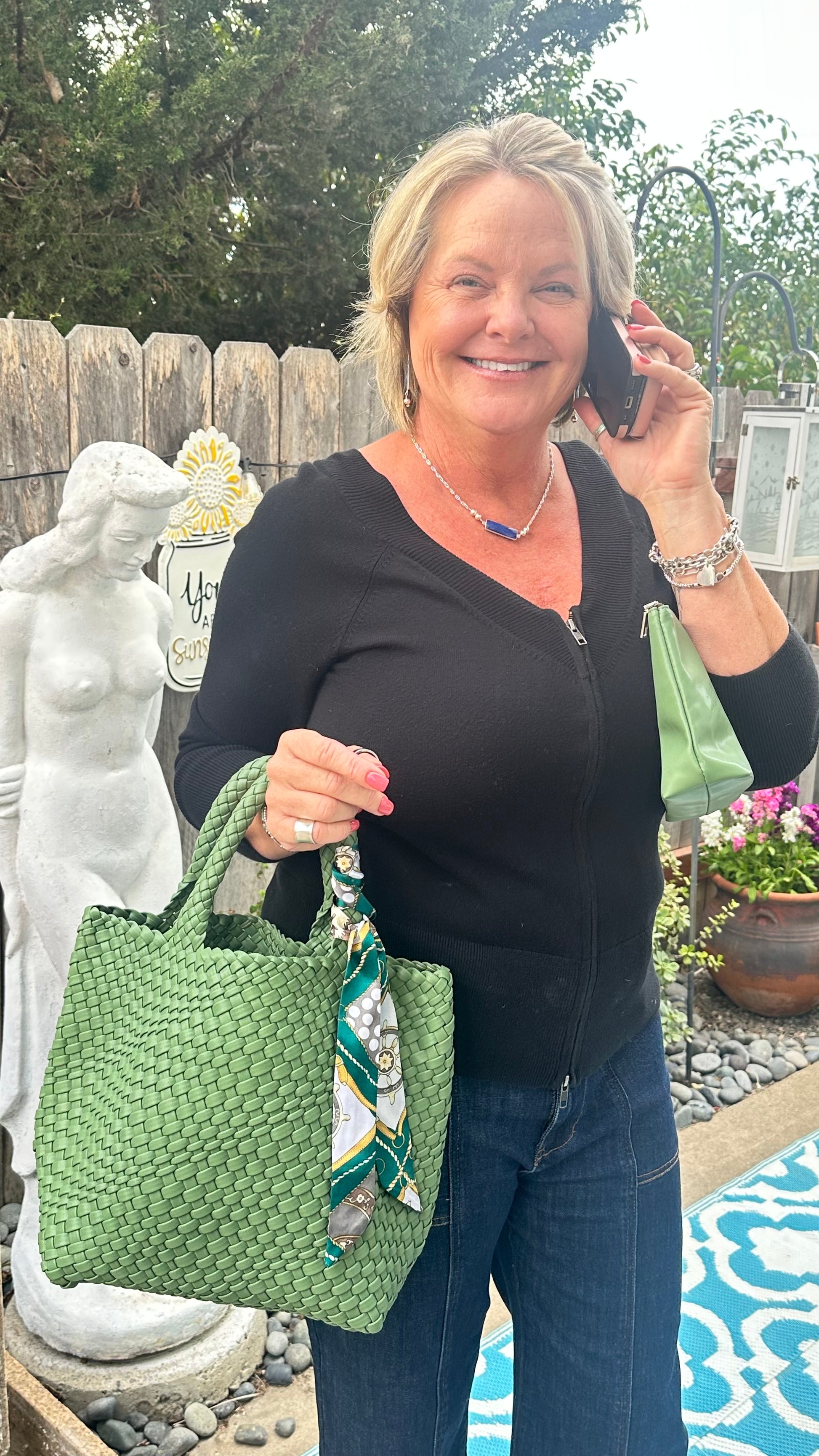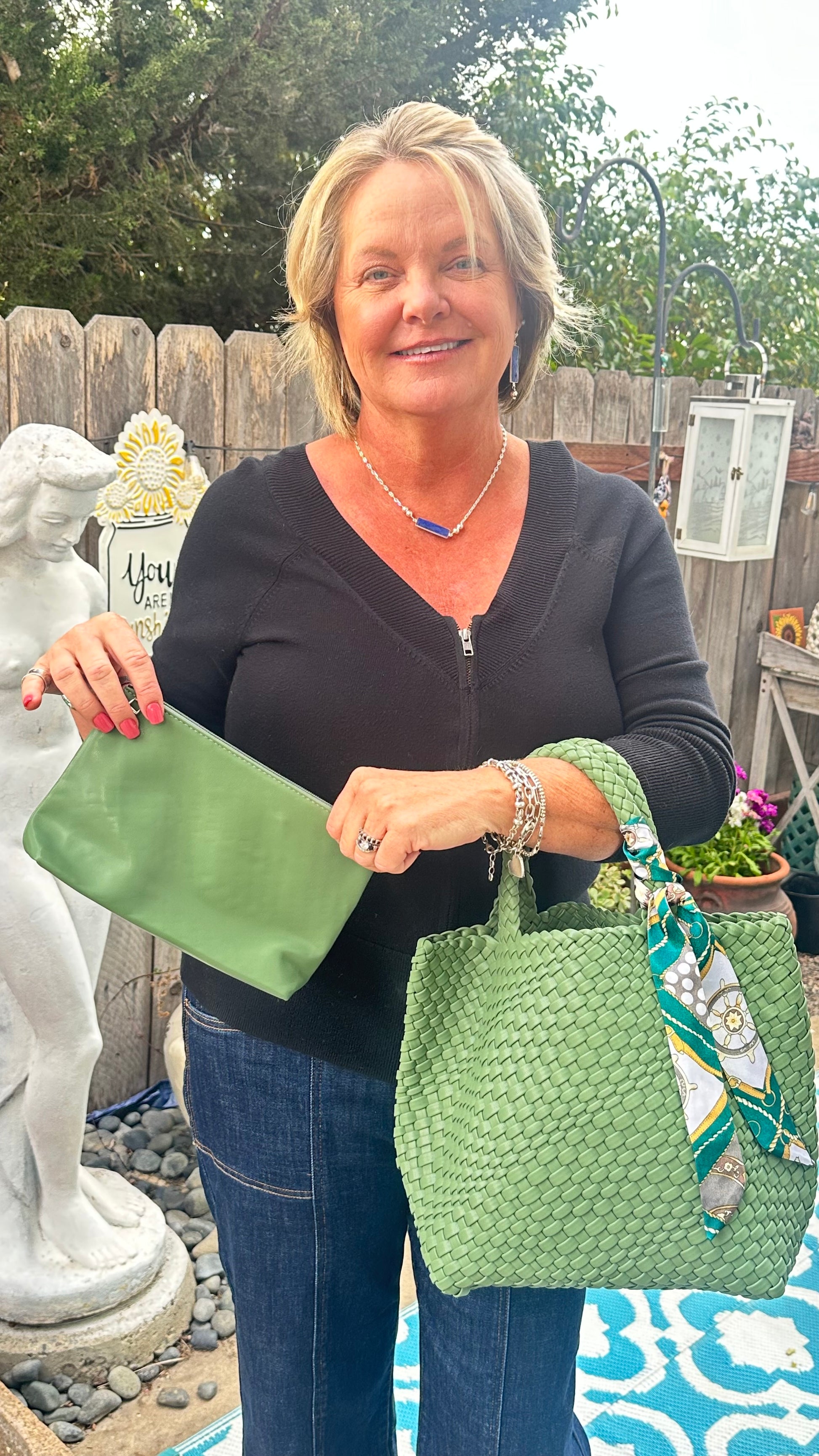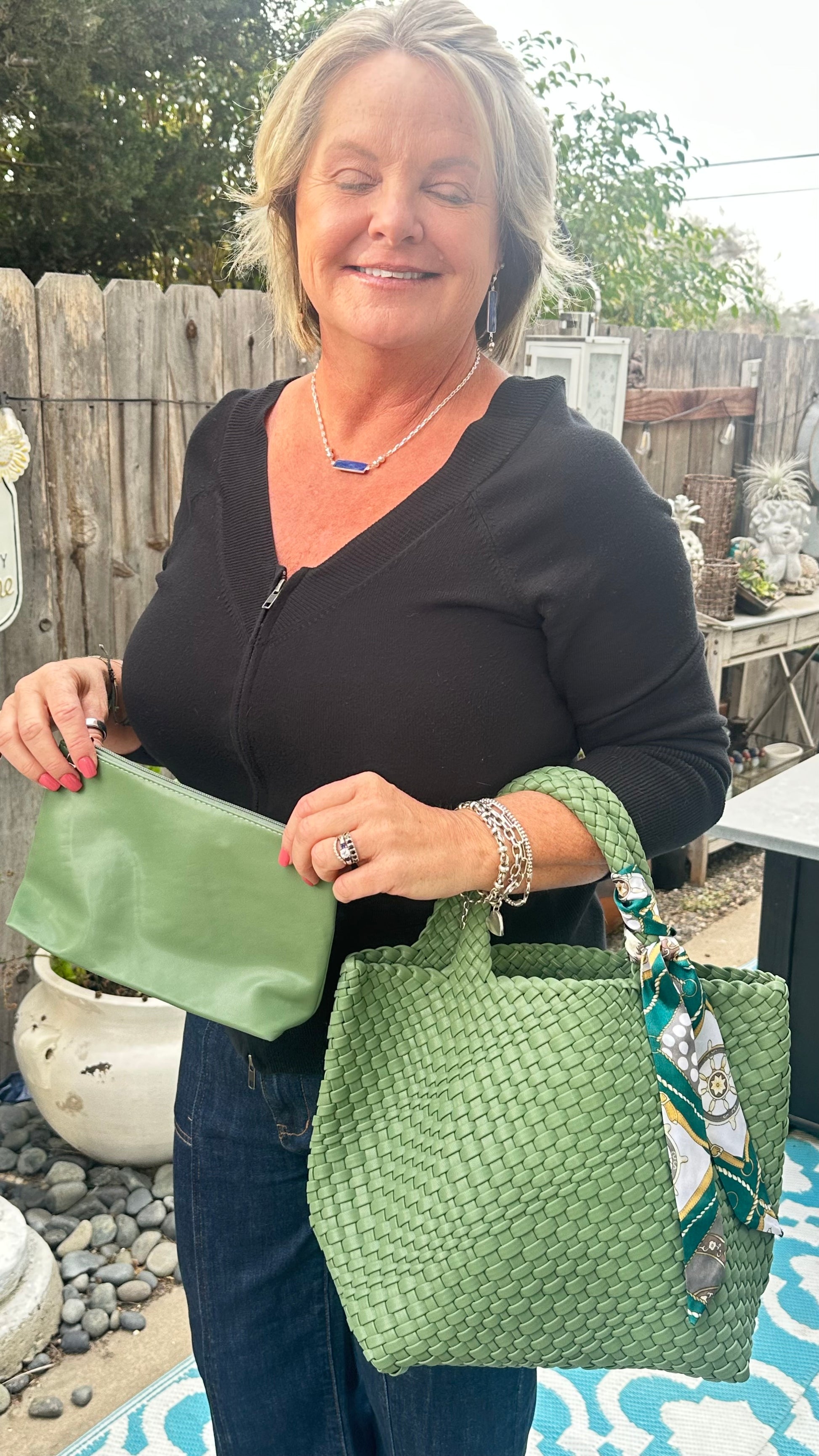 Stunning and sturdy! Handwoven Neoprene Bag - fully lined. Includes a free scarf and free matching wallet!