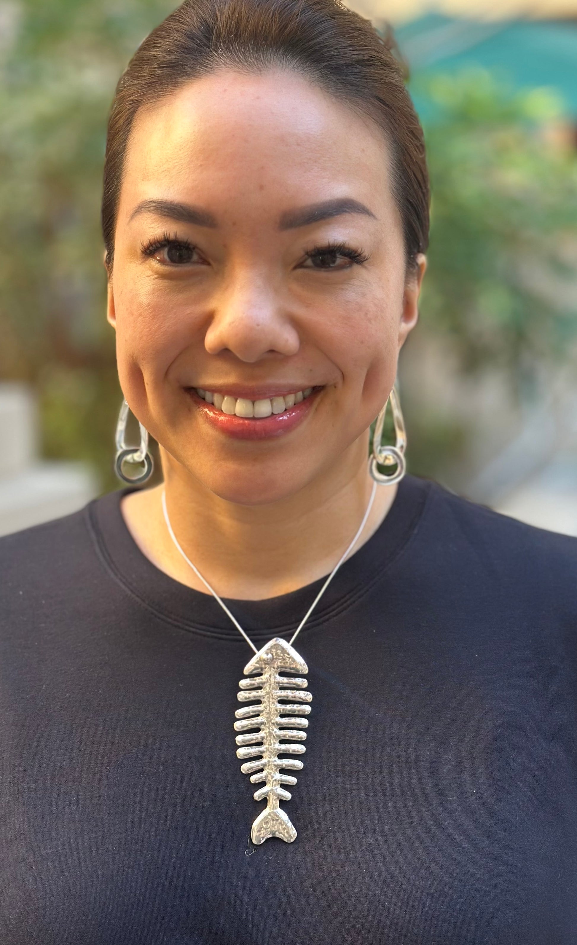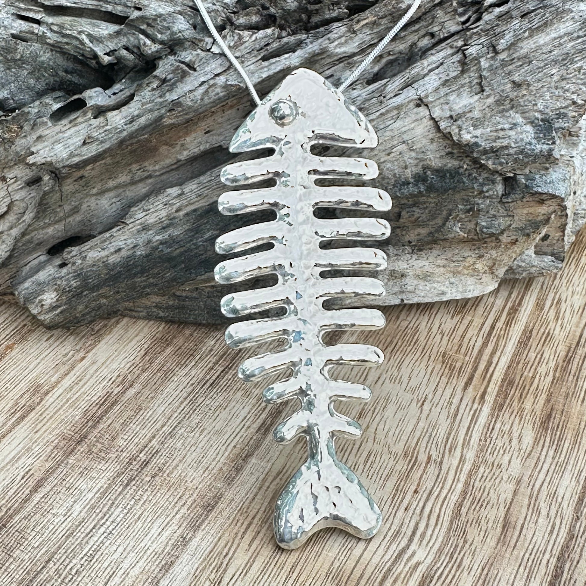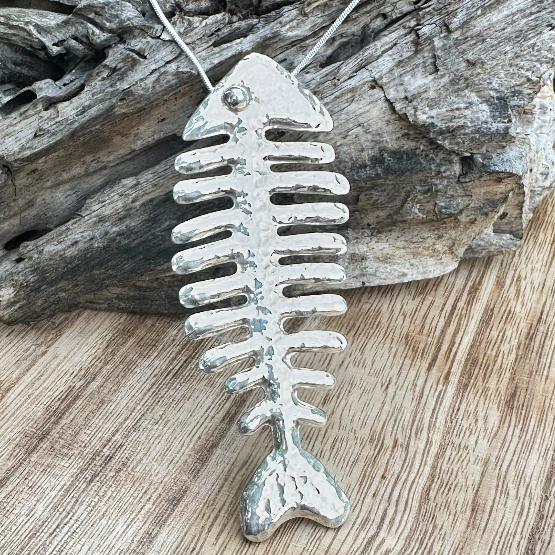 Taxco Large Sterling Silver Fish Pendant 4”Necklace (18")