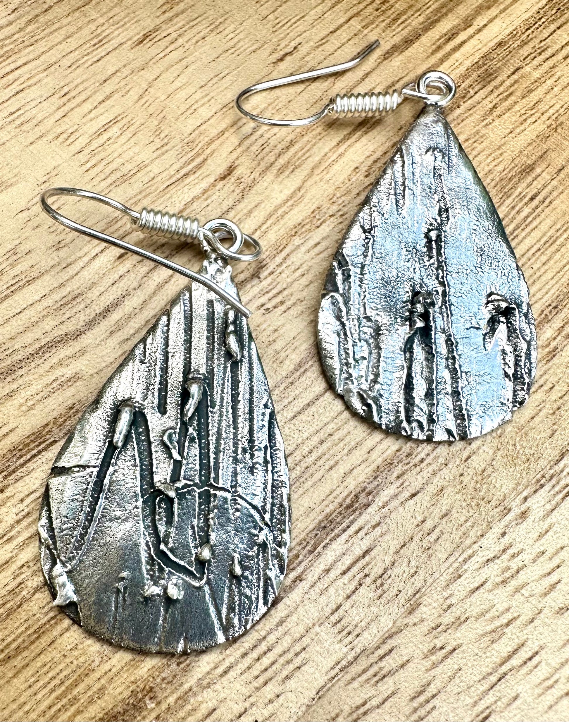 Taxco Textured Sterling Silver Teardrop Earrings 2.2”