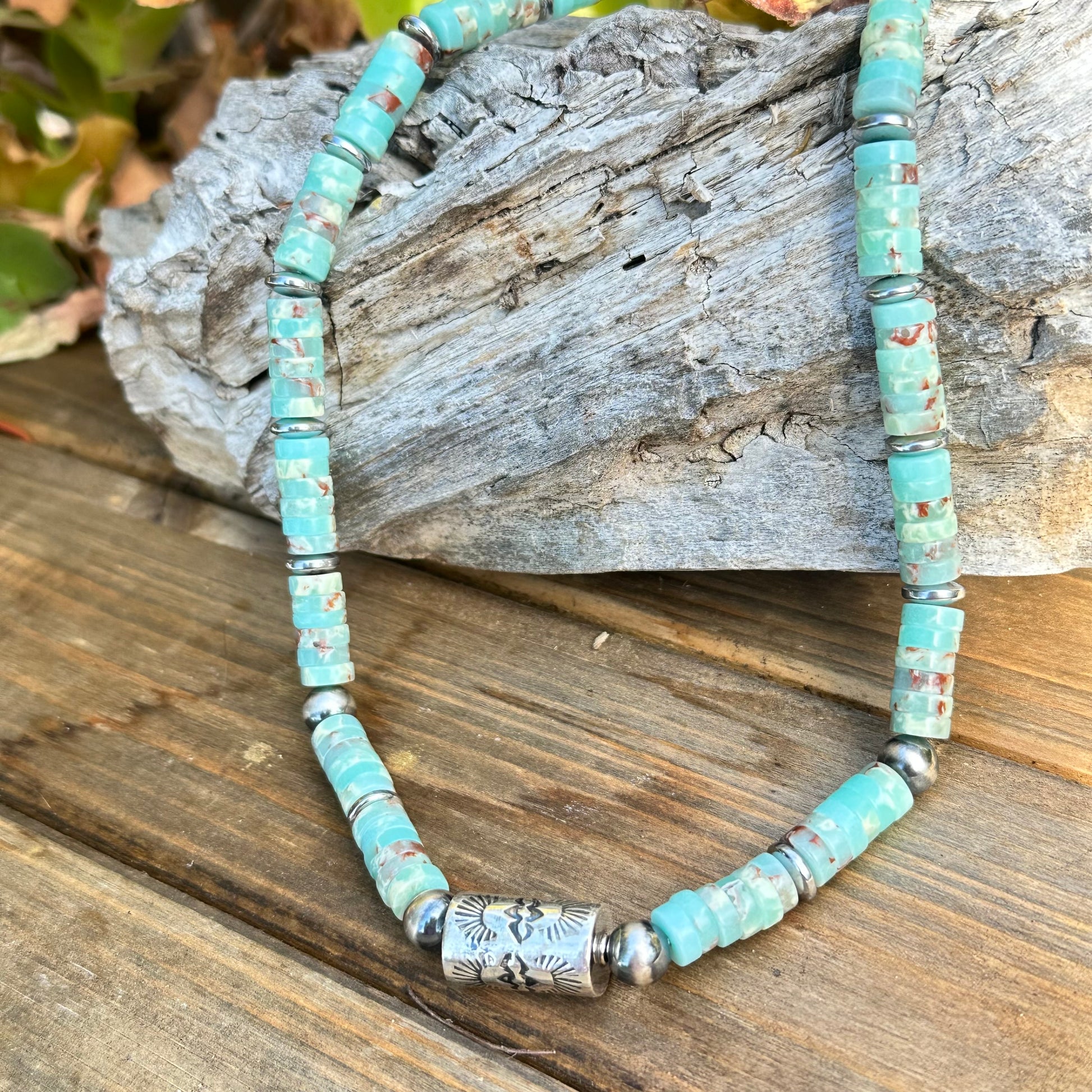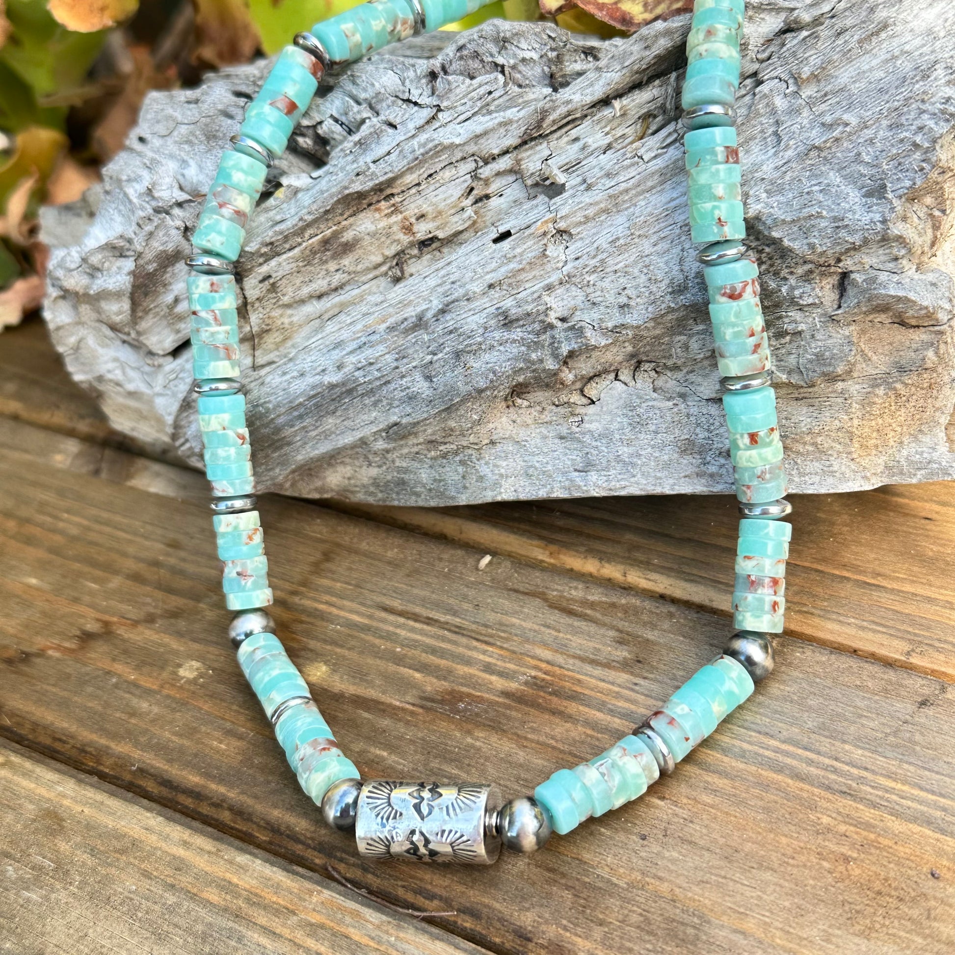 Caribbean Calcite Navajo Pearl Barrel Necklace (18"-20")