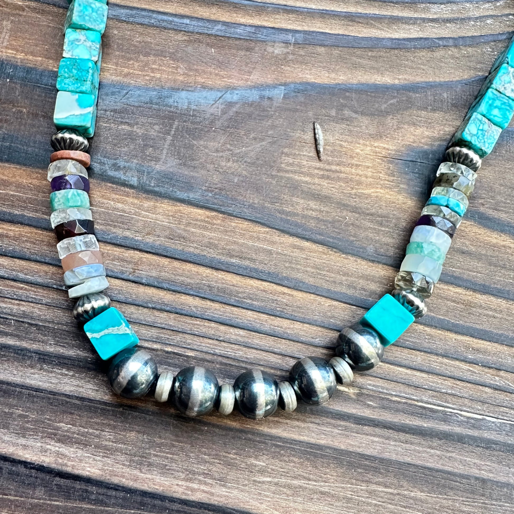 Turquoise Tourmaline Navajo Pearl Necklace (18"-20")