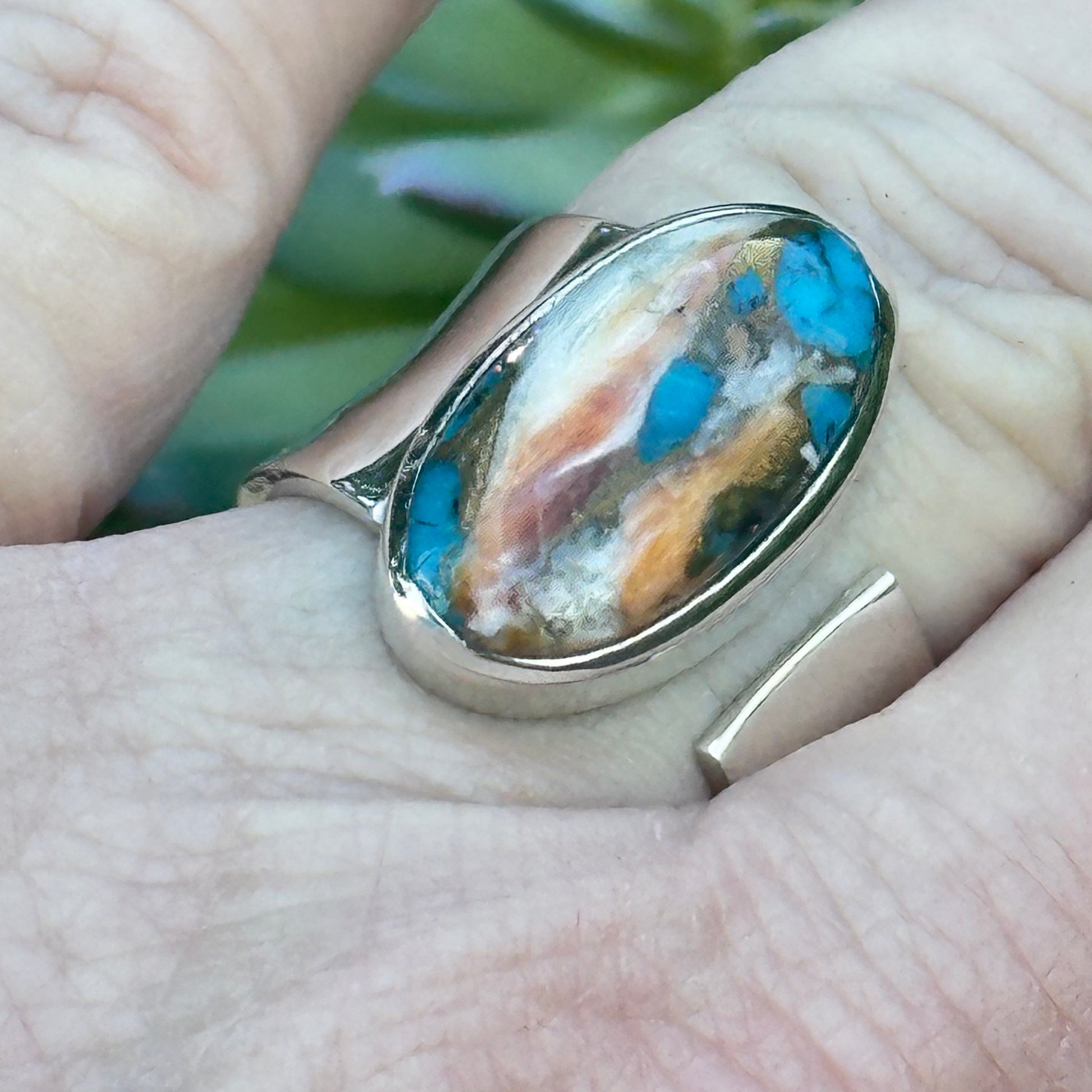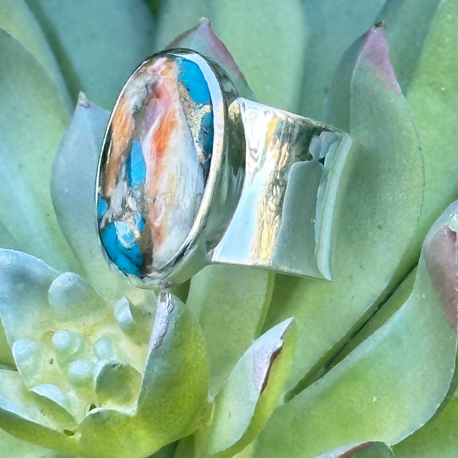 Turquoise Spiny Oyster sterling silver ring