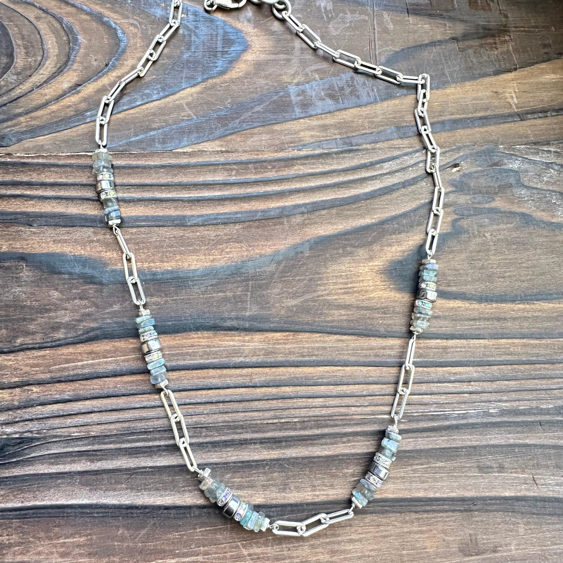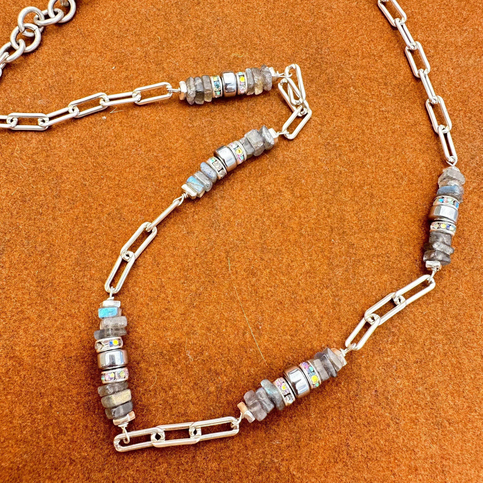 Handcrafted labradorite sparkle necklace, shimmering gemstone of magic and renewal. Perfect artisan gift for weddings, anniversaries & holidays.