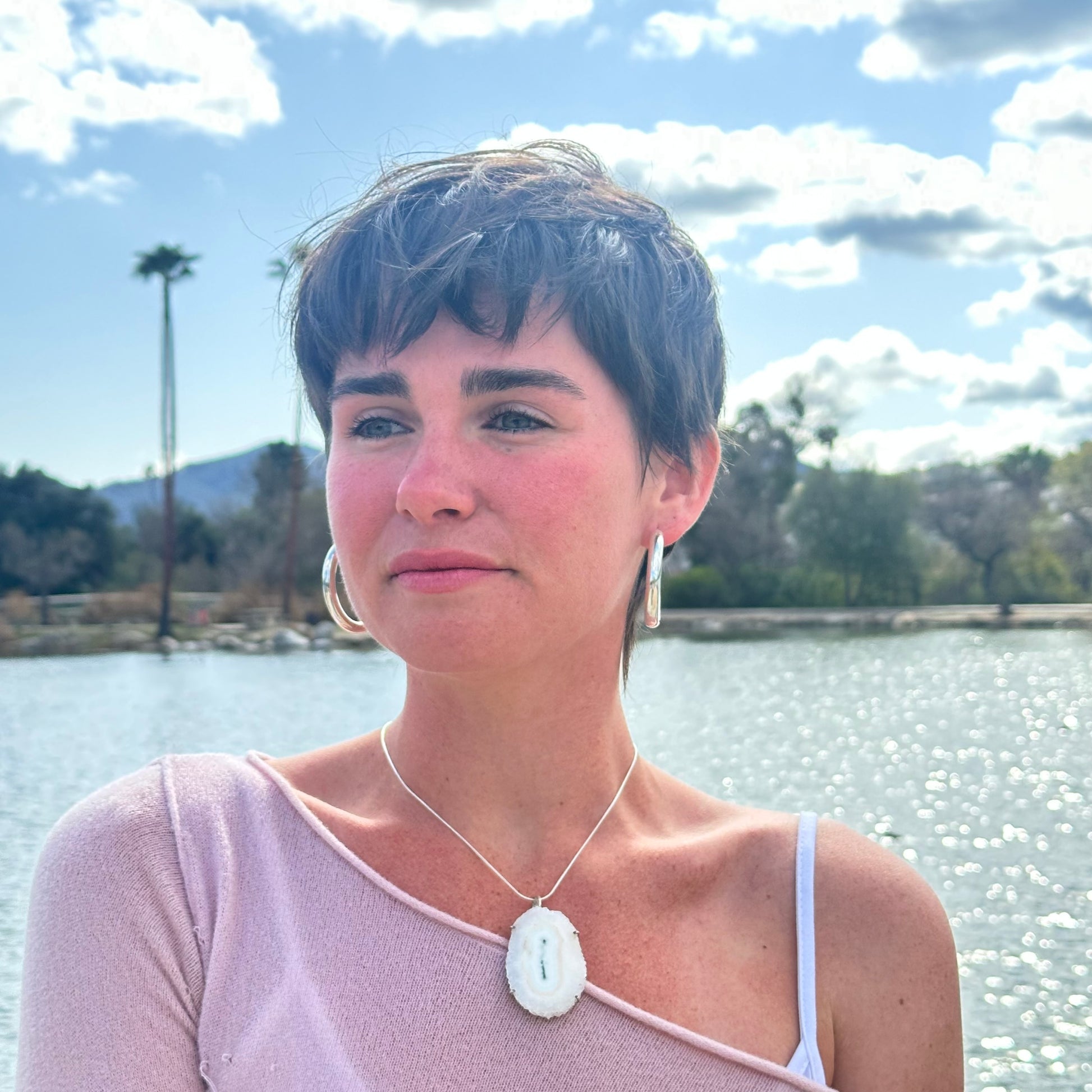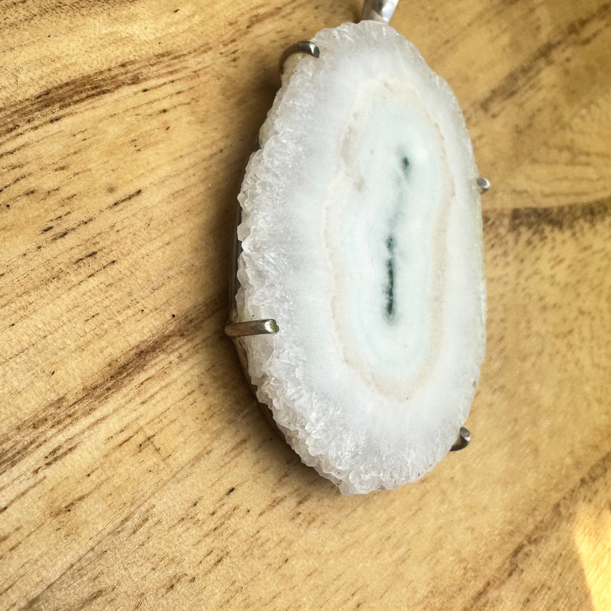 White Solar Agate and Sterling Silver on 18” Sterling Silver Chain